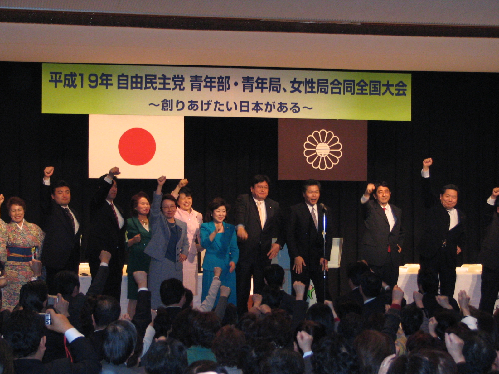 その前日は例年通り全国青年局大会が行われ都道府県連の代表約300名と平成19年の活動方針を決定した。第2部では中川幹事長、中川政調会長との意見交換を行い女性局との合同大会では安倍総裁も出席のもと激励をいただいた。「自分は第31代の青年局長です。」と強調され、青年局の責任と役割の重みを私と同じトーンで話していただいた。