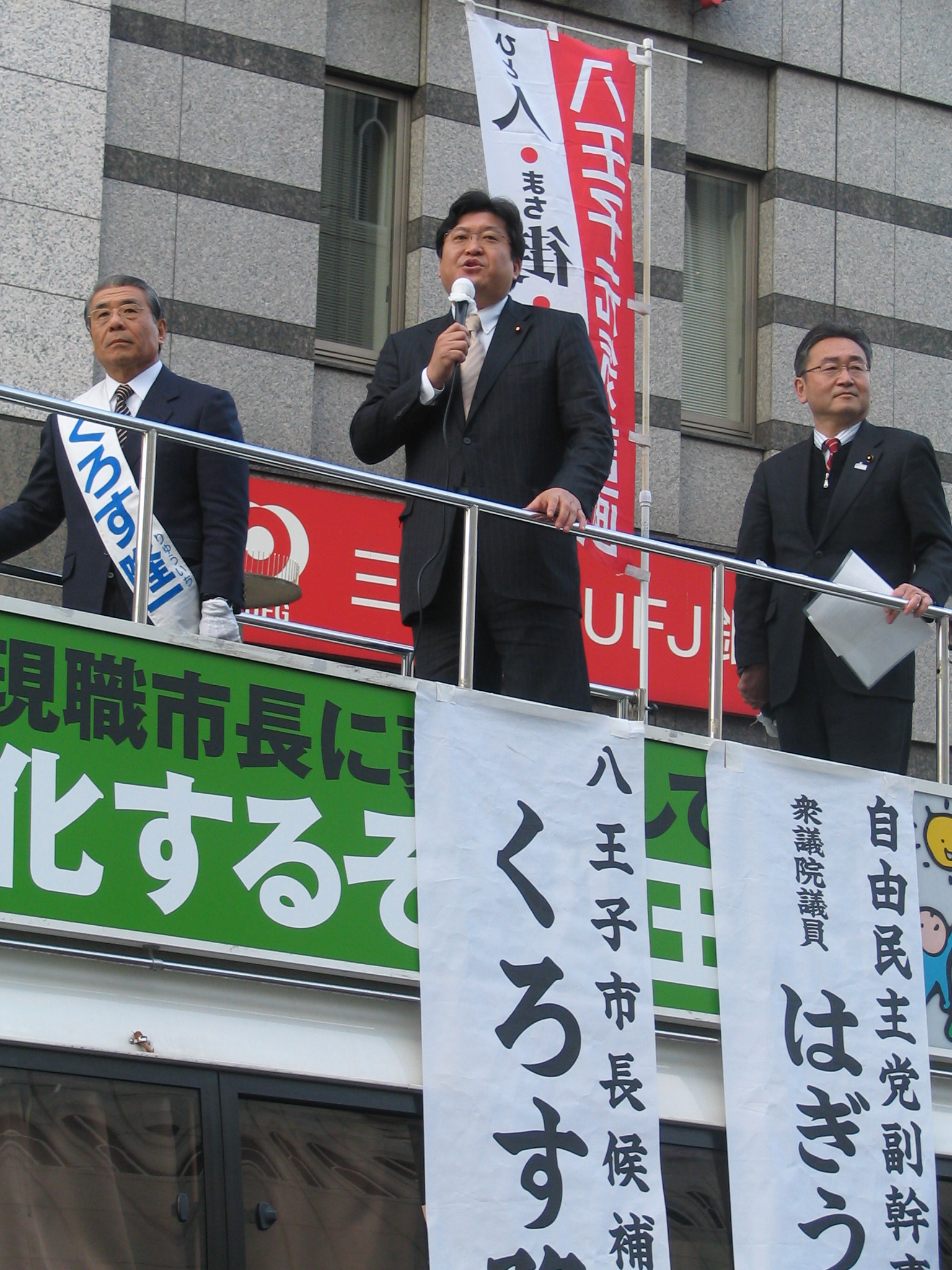 圏央道建設の是非や都立小児病院の移転問題など、新人の主張は私達政治のど真ん中にいる者にとっては周回遅れの話題に感じたが、常に流入人口のある本市では、最終結論に達していない問題については、いつでも政治イシューになることを知らされた。自・公連合対その他という構図も国の与野党対決を被ってしまい、対立軸を際立たせてしまった感は否めない。