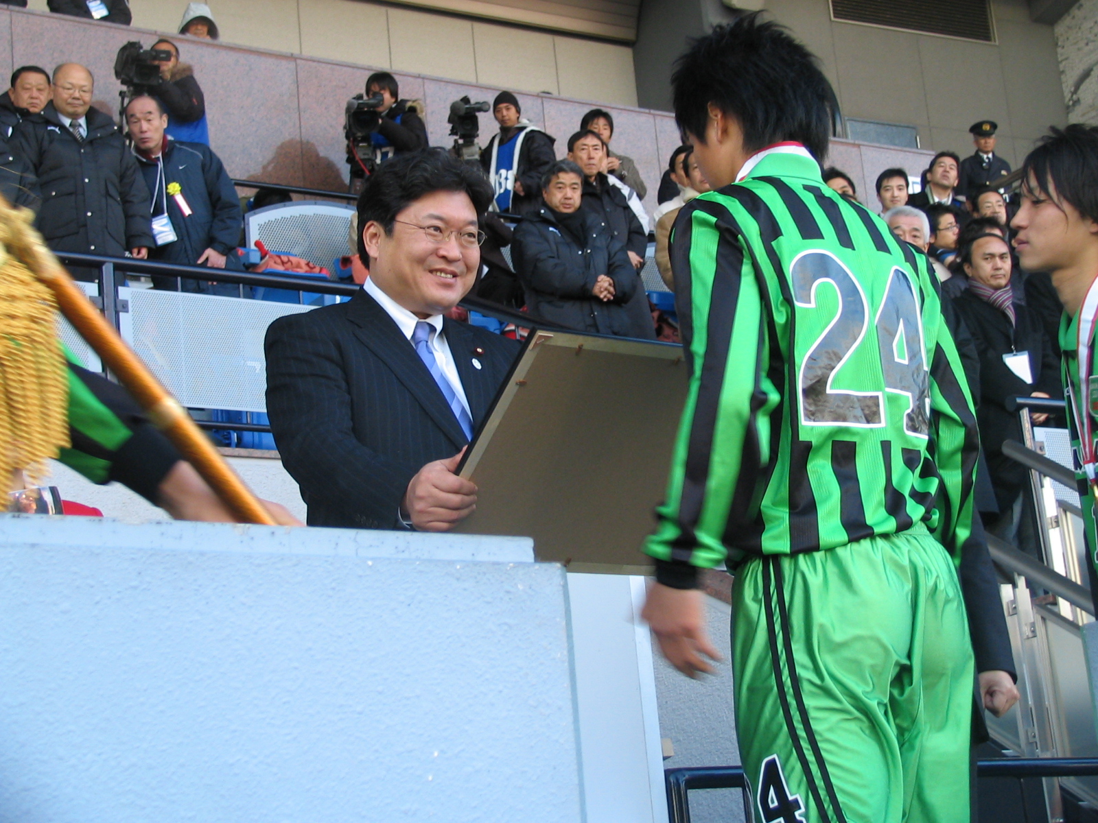 選手一人一人と握手をして杯と賞状を渡したが、負けた鹿児島の涙を流す選手達に「立派だった」「又頑張ろう」と声をかけるうちこみ上げてくるものがあり言葉に詰まった。結果はどうであれ、三年間素晴らしい仲間とサッカーを続け、国立のピッチに立てた事を誇りにこれからの人生を歩んで欲しいと願う。