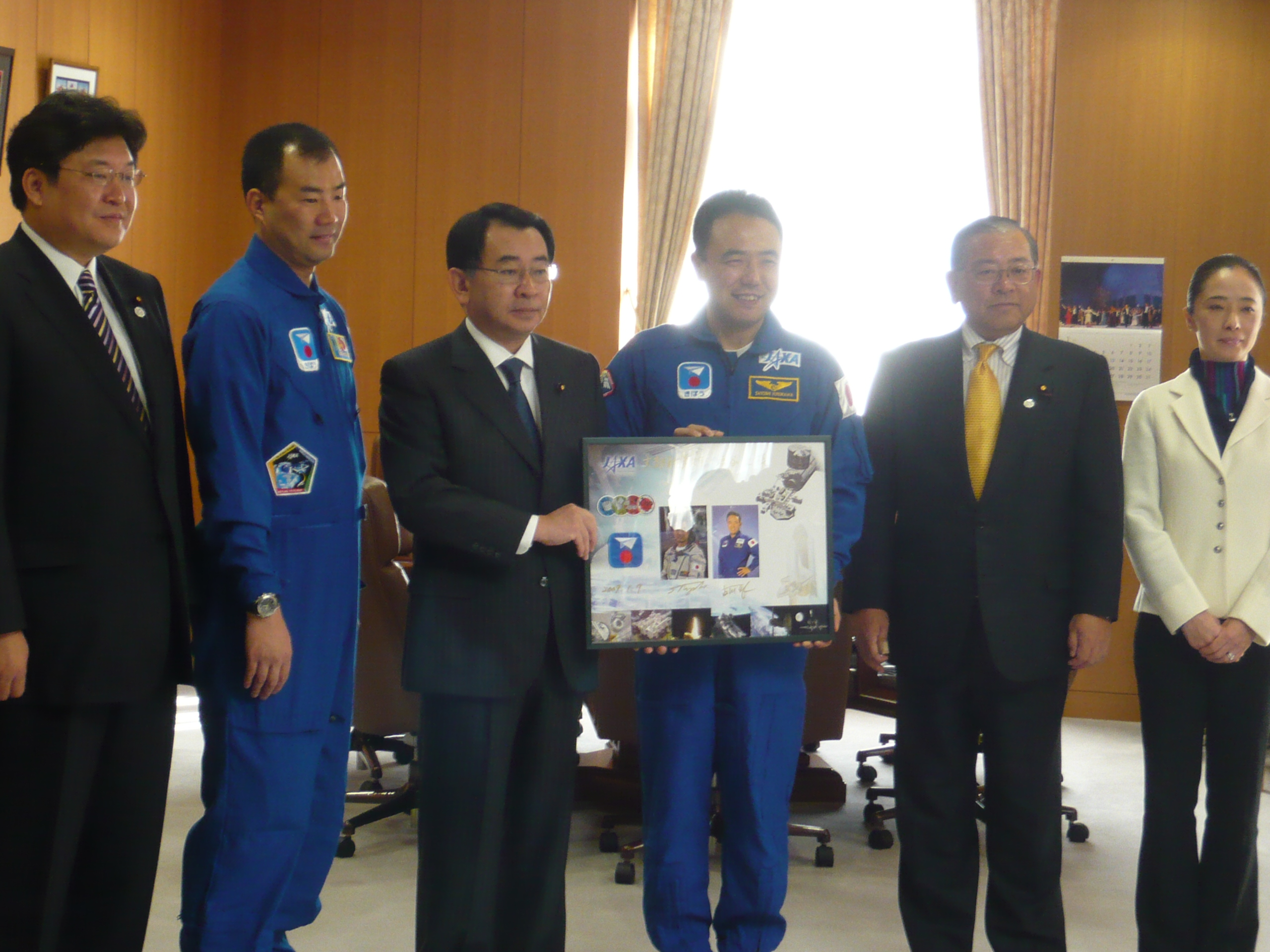 お見えになるお客様も時の人が続き、昨日は日本人3人目となる国際宇宙ステーションでの長期滞在が決まった古川宇宙飛行士と野口飛行士が訪問され、様々なお話をさせていただいた。一昨年、党科学技術専任部会長のときに若田光一さん、野口さんとはたびたびお会いをし、特に若田さんとは同名と同年である縁から「アポロ11号」をテレビで見た「20世紀少年」世代として共通の思い出も多く、これからは「光一」の時代だと部会でお互いを激励した。