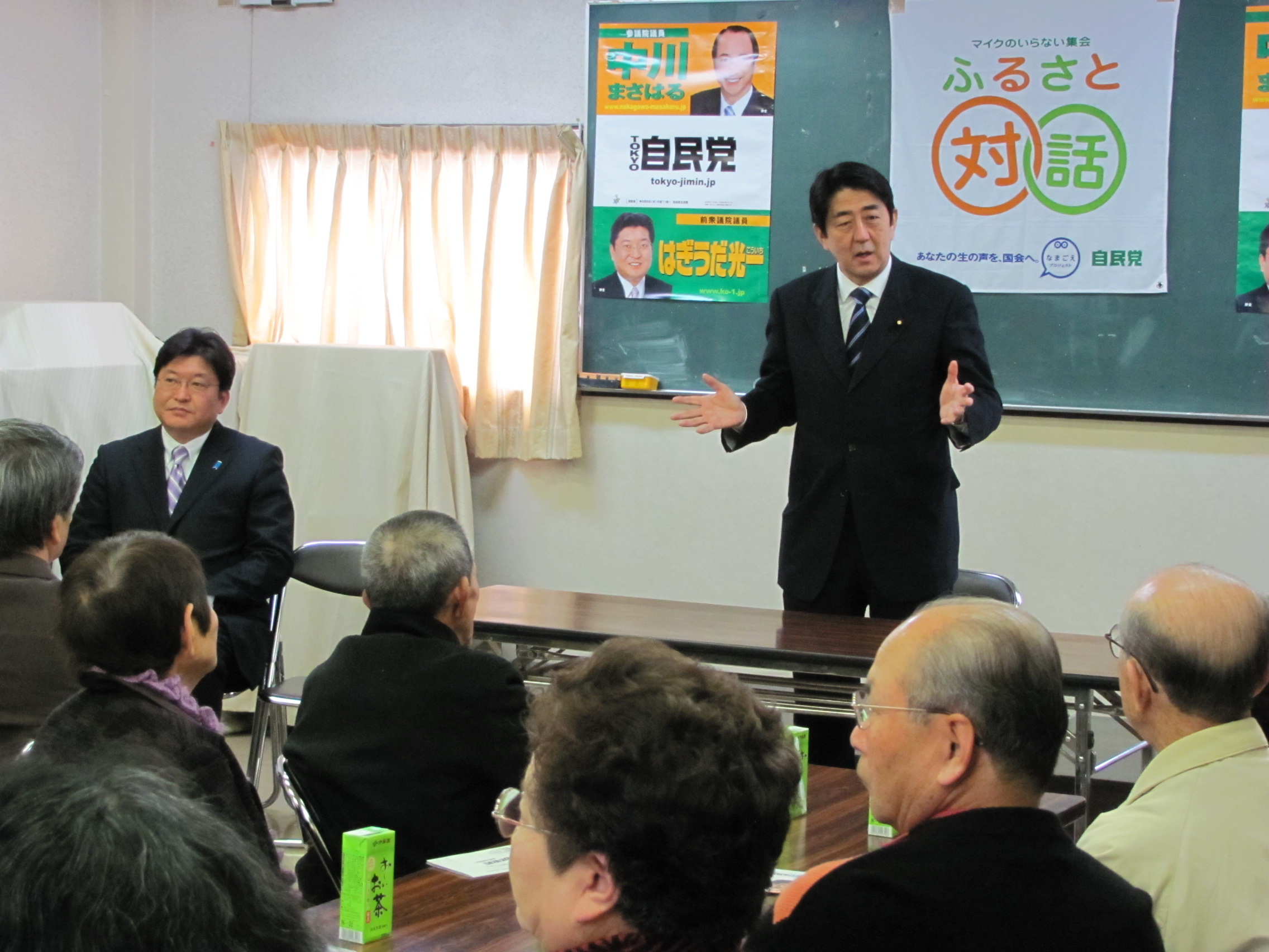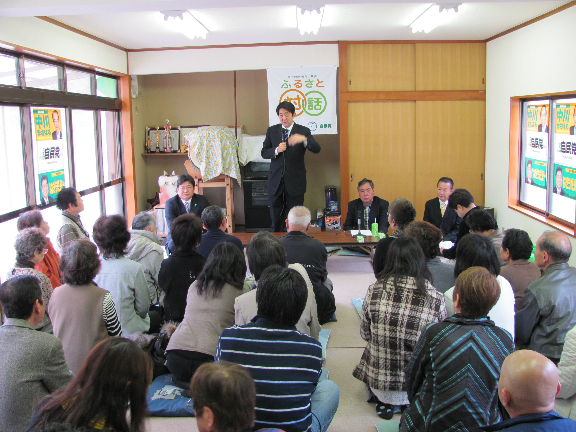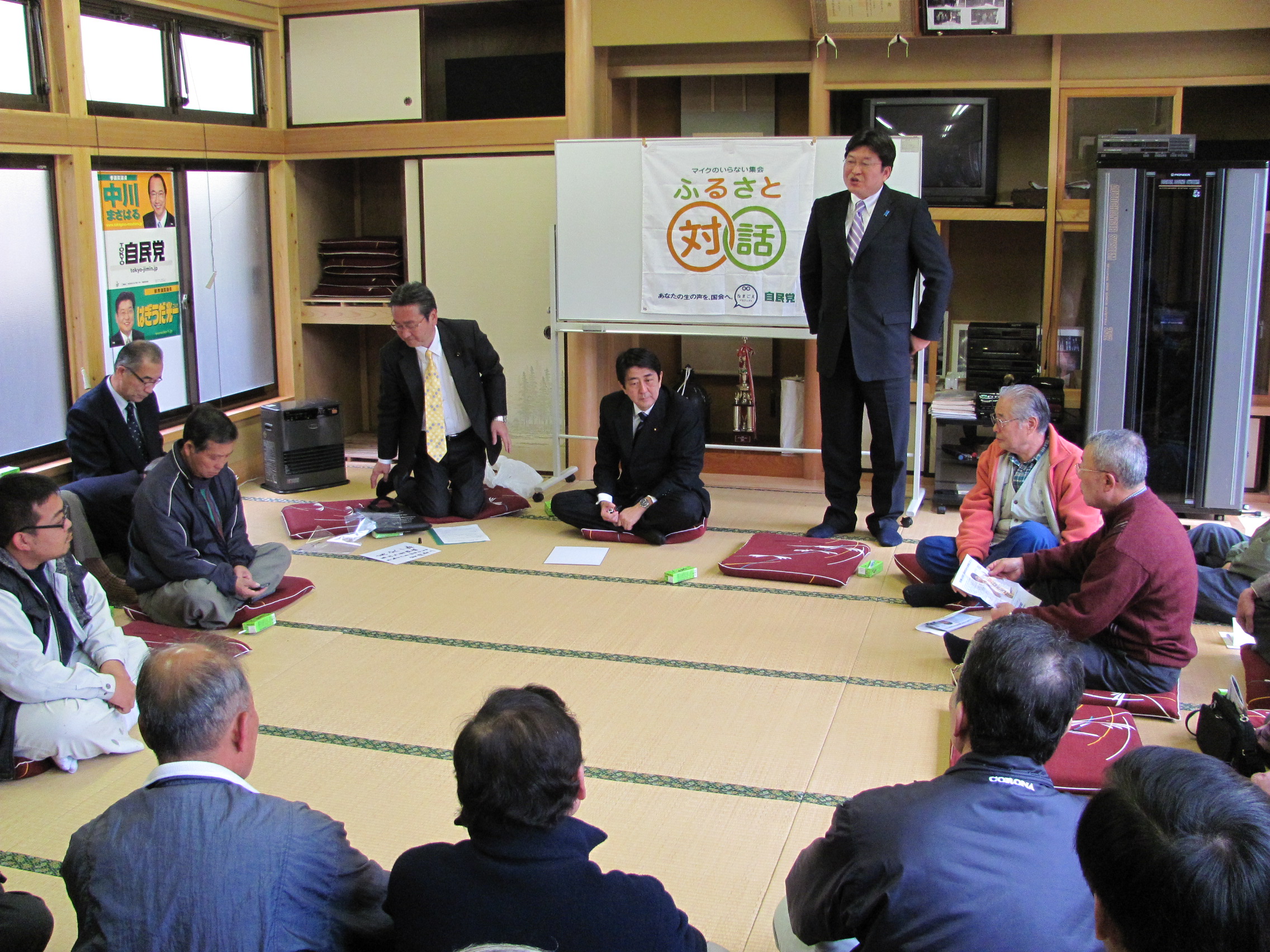 党再生に向け全国300選挙区で実施している「ふるさと対話」が八王子市で開催され、安倍晋三元総理と共に5会場を訪問させていただいた。今までの演説会と異なり大きな会場ではなく町会会館や神社の社務所等でこちらが一方的に演説するのではなく国民の皆様からの意見や要望、時にご叱責を伺う会で、そこで出た意見や提言を聞きっぱなしにせず、党が「生声プロジェクト」に持ち込み、必要な回答をお返しし、党の体質、政策に盛り込む作業を続けている。身近なことから安全保障や国の将来まで様々な意見が出され、実に充実した会だった。元総理といえども「自身の反省はどうなんだ!」と迫る一幕もあり安倍元総理も真摯にお詫びと反省点を述べ、返って皆さんから激励も頂いた。昼を挟んだ会場では地元の女性陣が前日からとん汁とおにぎりを用意して頂き、膝を交えての意見交換に花が咲いた。こういう丁寧な会を日本中で行っていけば必ずや党の信頼回復につながると確信した。