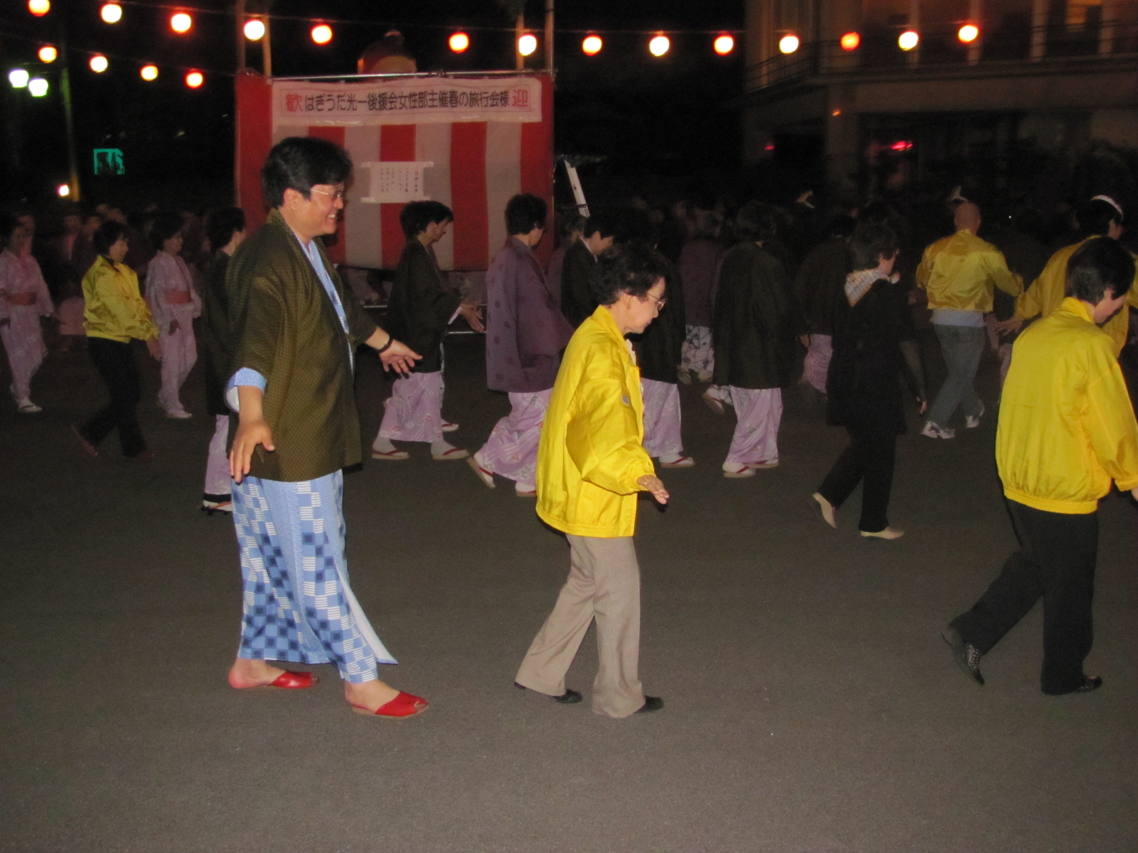旅行会といっても例年は何とか宴会に間に合うよう追いかけ翌朝バスを見送り東京に帰る日程だったが浪人のお陰で参加者の皆さんの様々な声が聞けて私にとっても充実した機会だった。なにせ500名を超える女性の団体、女将さんも色々配慮をしていただき、全ての風呂を女性用にし、男性の方には隣の旅館の風呂に行ってもらったり、食事も女性用にねり上げたメニューで評判もよく、宴会後には中庭でやぐらを組んで盆踊り大会も行い、私も太陽おどりを踊り、佐渡おけさでお開きとなった。楽しい一時をご一緒させていただき改めて戦う勇気をいただく事ができた。