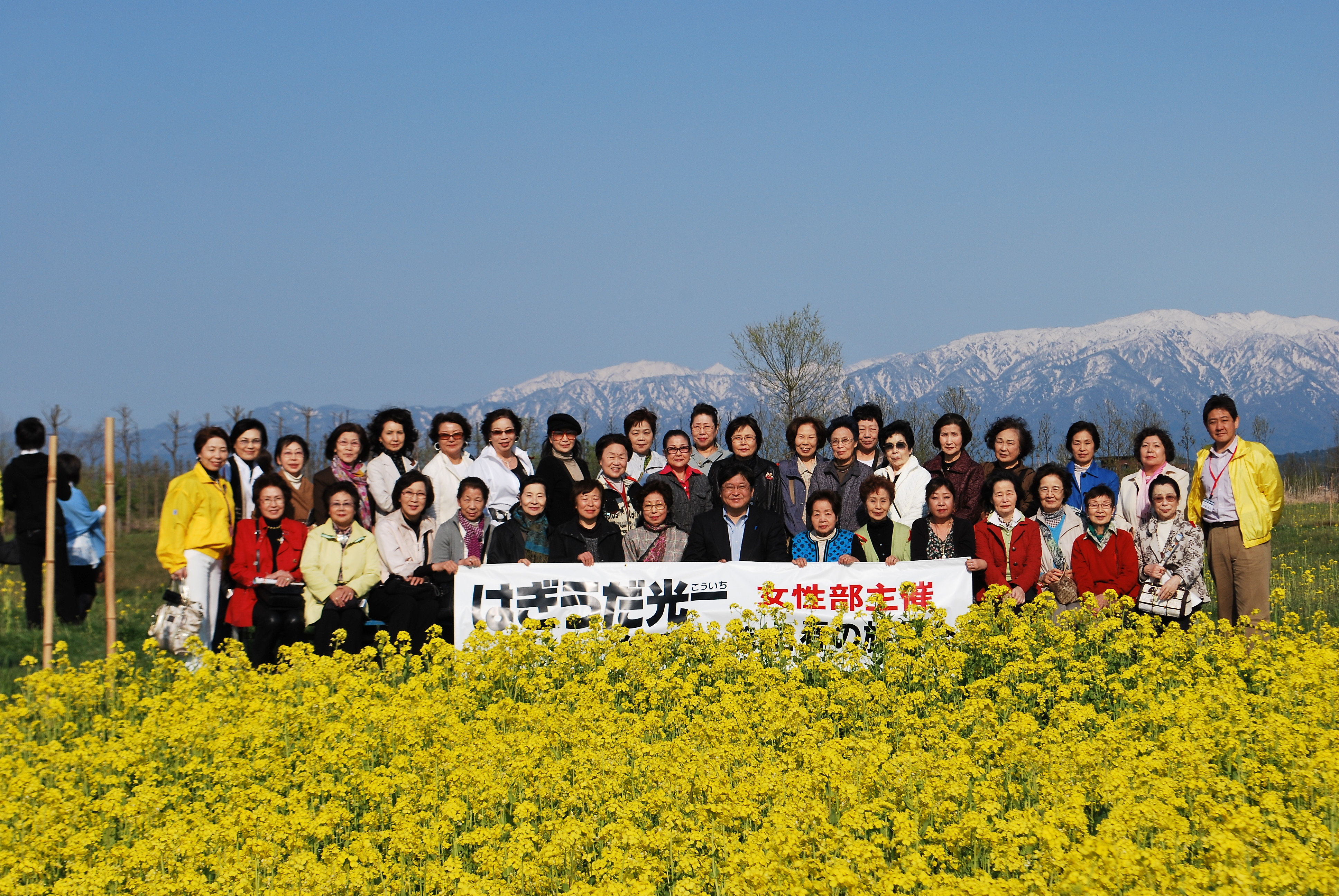 天候不順の一週間だったが幸い女性部主催の旅行会の2日間だけは雲一つない快晴。天も味方してくれた上に、長い寒さのお陰で新潟では満開の桜に遭遇でき、皆さんも大喜びだった。