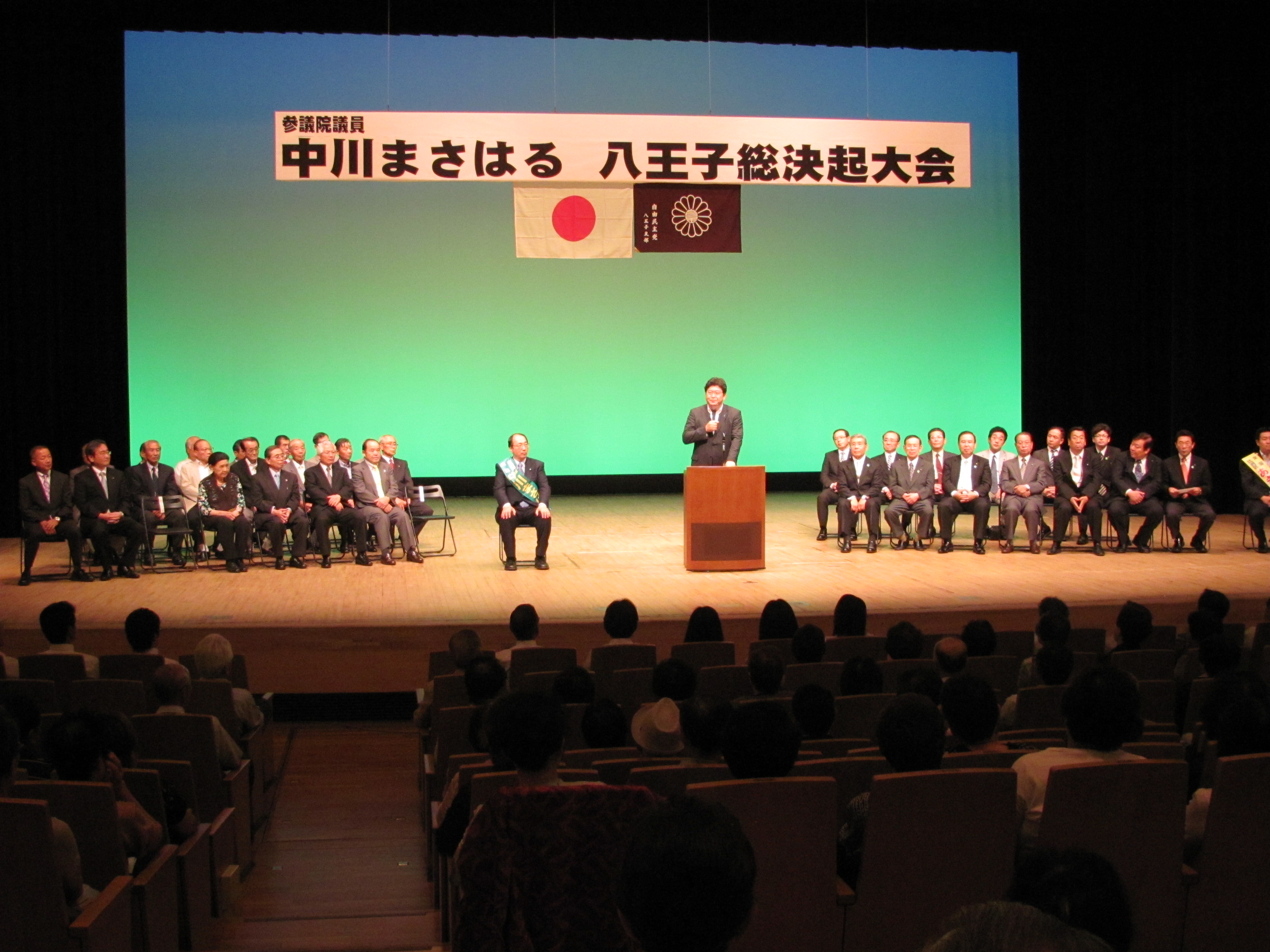 いよいよ参議院選挙が公示され、私もバッチは無いながら中川まさはる三多摩選対委員長として候補者と共に立川−八王子−吉祥寺と街頭に立った。表紙をすげかえた菅民主党は一時の劣勢を挽回したかの様な報道はあるが、国民の皆さんも昨年とは異なり冷静に政策に耳を傾けてくれる。私は「自民党が再び政権を担う政党に生まれ変わったと胸を張るつもりは無い。再生の途上、体質改善の途中で二重丸をいただける状況には無いが、ただ民主の単独過半数を阻止しなければ国会の暴走は止められない。東京の一議席だけは託して欲しい」と訴えた。党青年局として全国を廻った3年前とはうって変わって地味な立場だが故郷八王子、そして三多摩の皆さんと力を合わせて頑張る所存だ。