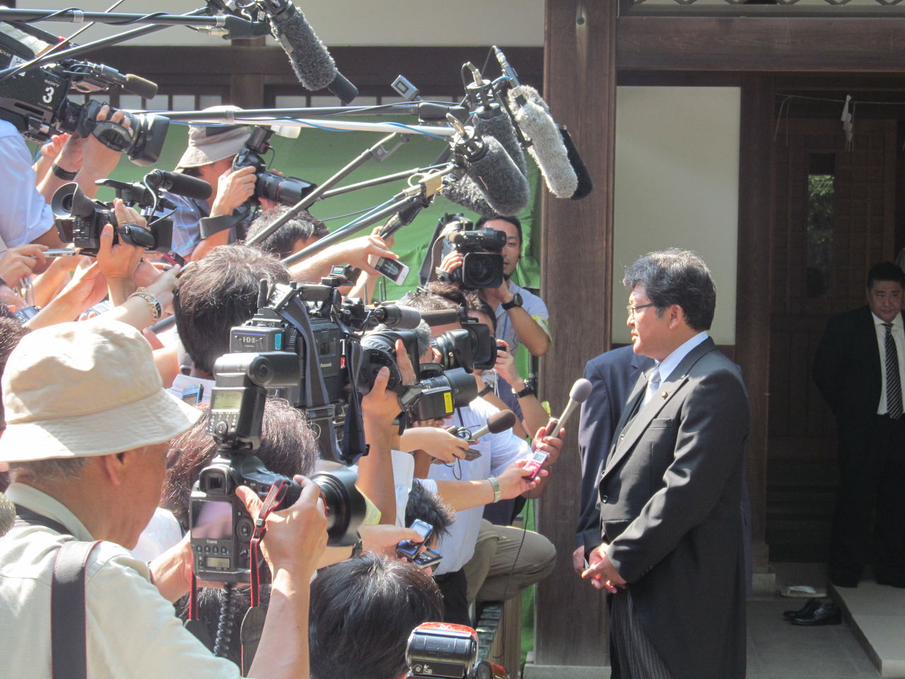 この10年間、2007年の総理在任中を除いて毎年ご一緒してまいりましたのに一人で参拝するのは一抹の寂しさはありましたが、様々な状況を総合的に判断しての結果だと思います。もっとも事務方ではなく私を代理に立てたのは総理の靖国への不変の思いの強い現れだと思います。心の代理を務められる役には足りませんが「尊い犠牲となられた先人の御霊に尊崇の念を持って哀悼の誠」を捧げました。