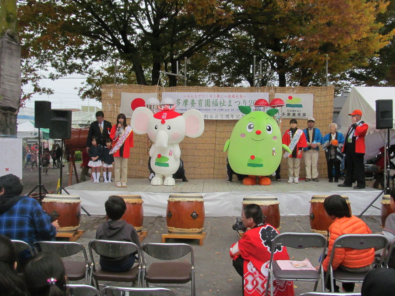 多摩養育園が法人65周年を迎え、福祉まつりの中でイメージキャラクターのゆるキャラ発表会がありくす玉割りを行いました。法人の皆さんが私を「萩生田先生」と