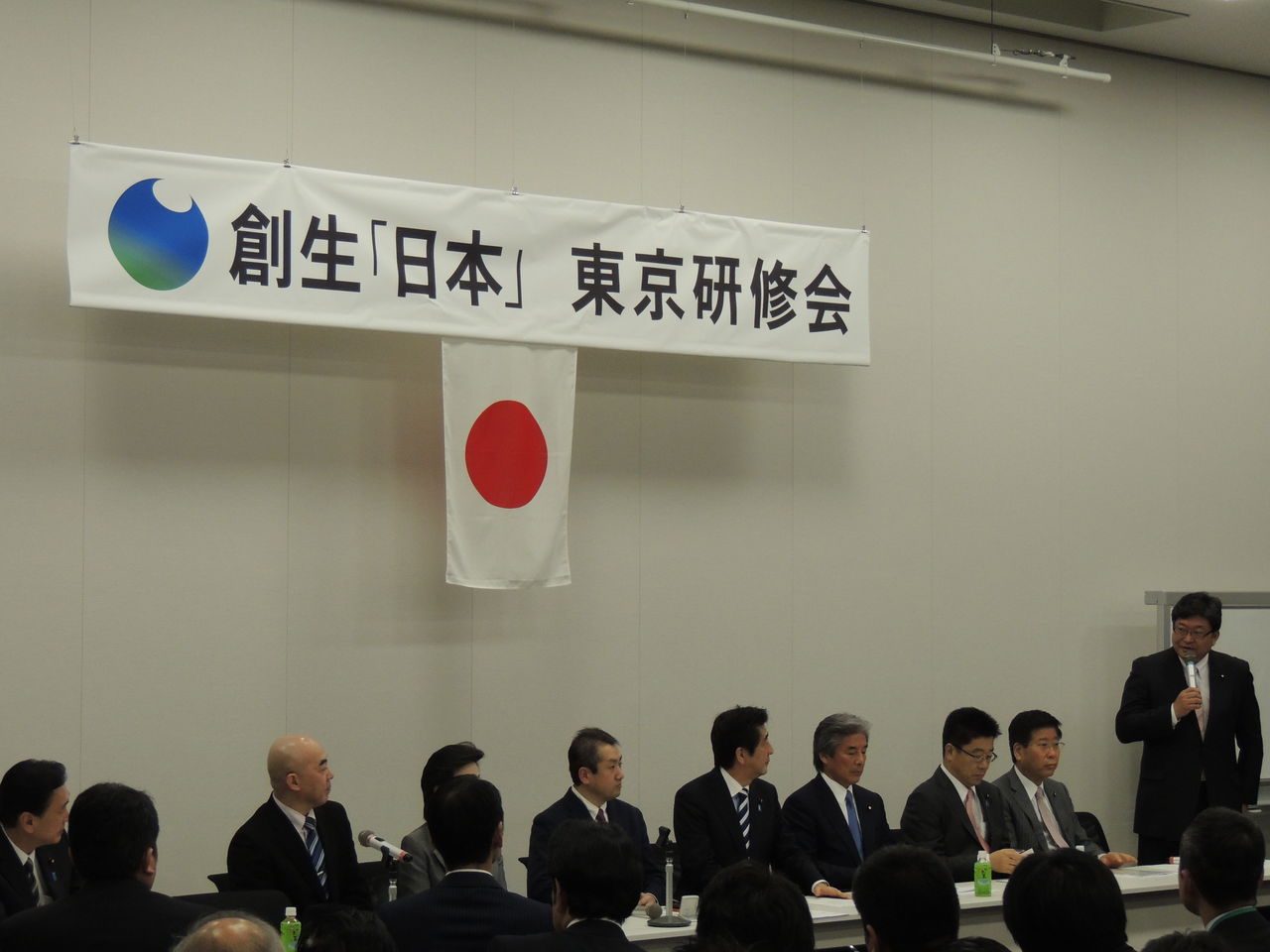 超党派の保守系議員政策グループ「創生日本」の第4回東京研修会が開催されました。故中川昭一先生が会長、私が事務局長で創設した会なのですがその後一緒に落選、しかも政権交代、突然の中川先生他界後はその意志を継いで安倍先生が会長に就かれ、総理に返り咲くきっかけの一つにもなった会です。過去3回の研修は浪人中でしたが今回は事務局長に復帰し、主催者としてジャーナリストの櫻井よしこ先生から国際情勢、日本教育再生機構の八木秀次先生から教科書改革、作家の百田尚樹先生からは『永遠のゼロ』を執筆された苦労話やその時代の方々への思いについて語られました。全国から参加された400名を超える皆さんも大変喜んでいただき大役を果たす事ができました。