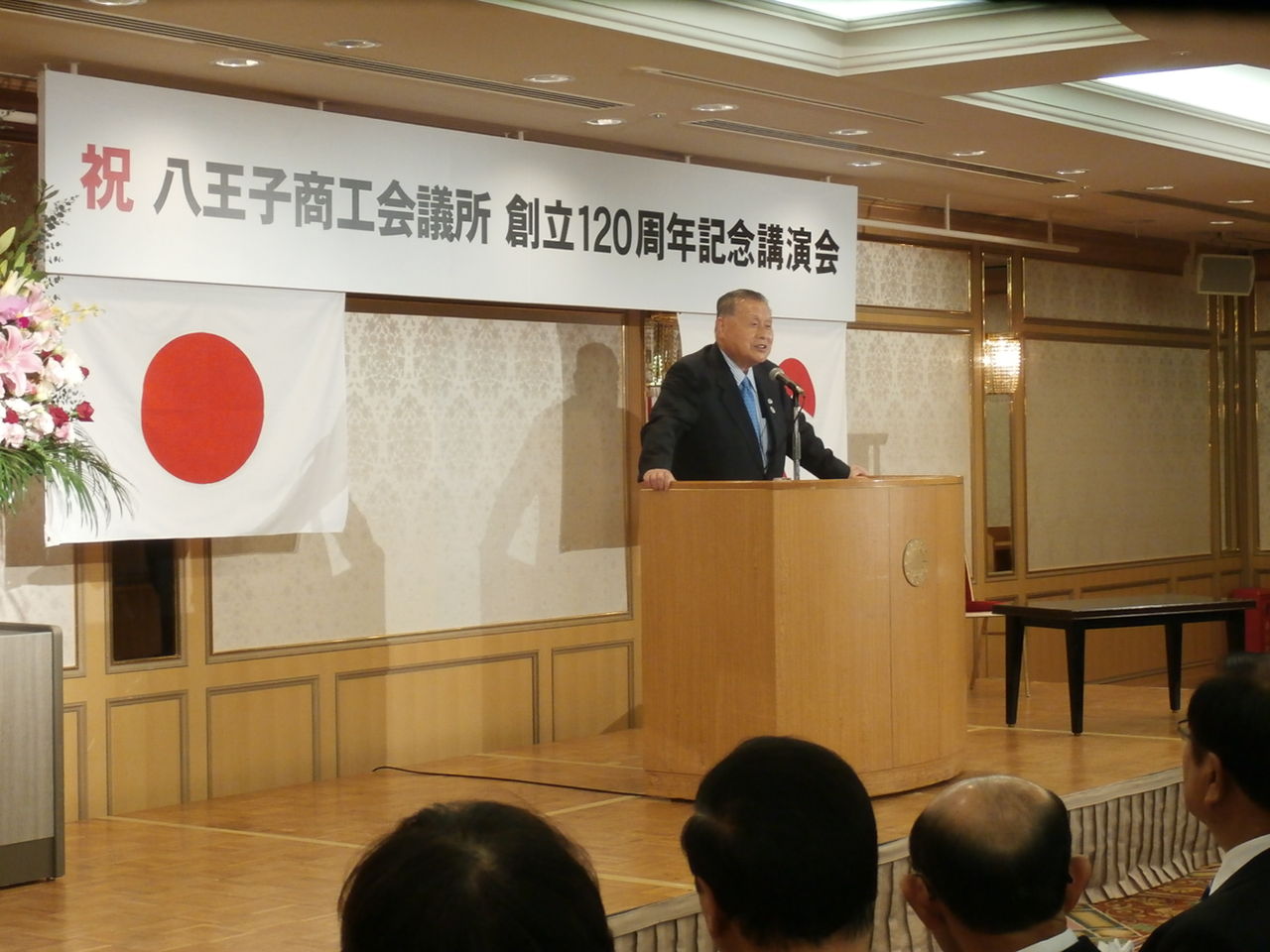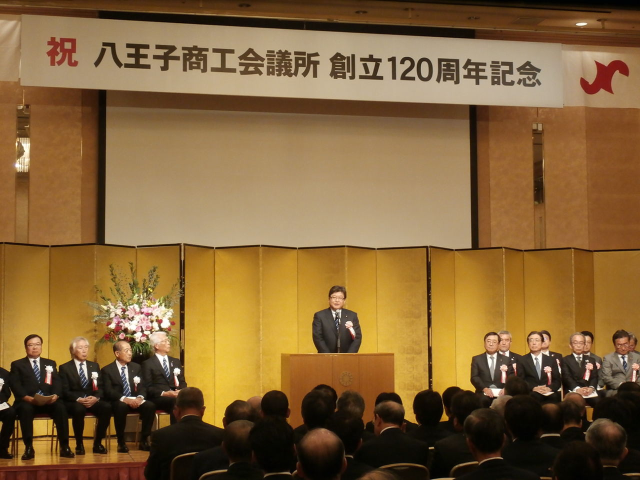 八王子商工会議所が創立120年を迎え、記念式典が行われました。明治27年、全国でも38番目の歴史を有し、幾多の時代の変遷の中でその都度地域経済の舵取りを担ってきた先人の皆様に敬意を表します。祝辞では、歴史と伝統、23大学の知識、ものづくり企業群、高尾山をはじめとする豊かな緑、圏央道の開通による交通の結接点としての利便性など本市の持つ潜在的な魅力をしっかりと繋ぎ合わせ、多摩の中核としての「産業都市八王子」を再生できるよう国政からの取り組みを約束しました。