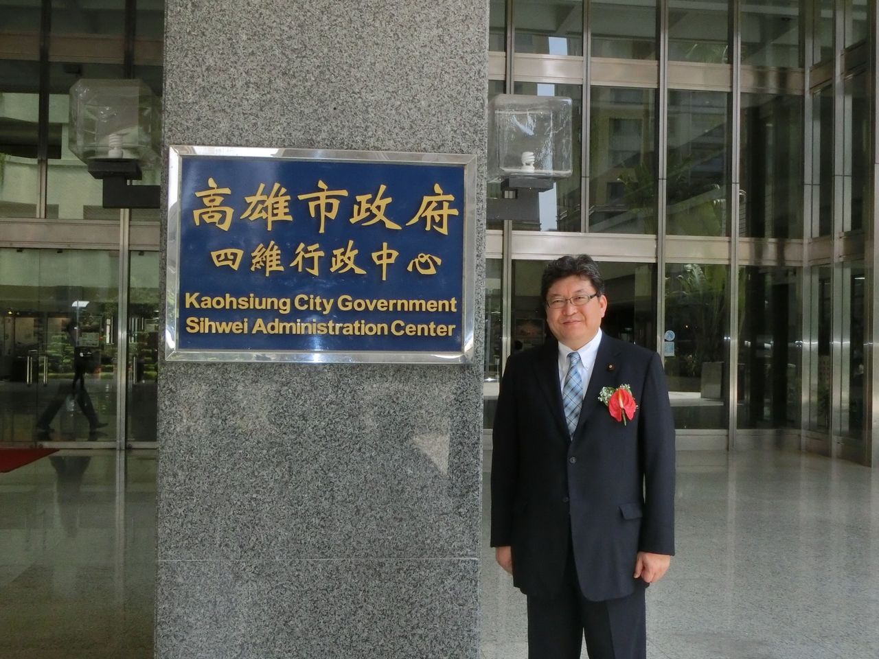 一昨年、没後400年を記念して始まった大久保長安 慰霊祭が産千代稲荷神社で行われ、今年は露店も出る賑やかなものとなりました。どちらかといえば島根県の石見銀山などの鉱山開発で知られている長安ですが、徳川家康の側近として八王子へ入った後は、現在の甲州街道や浅川の堤防整備に尽力し、その後江戸時代に新宿以西の宿場町として栄える礎をつくった八王子の建設者と呼ばれております。八王子千人同心を組織し、防災・防犯に目配りをしたのも長安の偉業の一つと言われております。時代は異なりますが、21世紀の今、八王子市を次代に渡す都市基盤や安心安全を、私も負けずに頑張る決意をご挨拶で述べました。台湾からの帰路です。駆け足でしたが台中市長と面談後、本市との姉妹都市でもある高雄市長とも面談しました。お陰様で友好関係は官民共に発展しており、ボーイスカウトのキャンプや女子サッカーの交流試合、民踊の皆さんもらんたん祭り等に参加しておりますし、近日中に本市発祥のレストラン「うかい」も高雄市に新店舗を出すそうです。台南市長ともお会いした後は台北へ戻り、先程 李 登輝 元総統にも久しぶりにお会いする事ができました。