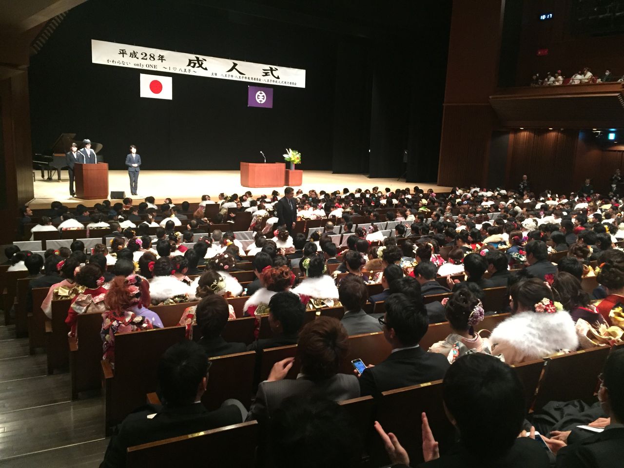 八王子市では今年も約7500人の新成人が誕生しました。数年前から役所主導ではなく、実行委員の公募をして新成人による式典運営を続けております。趣向を凝らし、地元でメジャーデビューを果たした「フラチナリズム」のビデオレターでは、映像から本人達が飛び出し歌のプレゼントをするというサプライズも。多くの新成人に声をかけられ握手をしましたが、「小学校の国会見学で会いました。」という人が多く嬉しかったです。