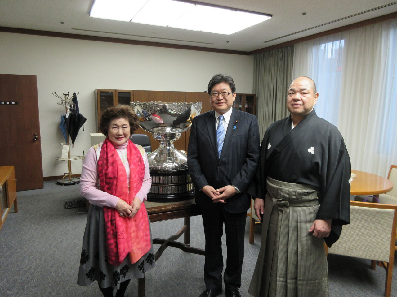 幸いにも内閣総理大臣杯の授与役を務め、緊張の中、国技館の土俵に上がらせて頂きました。