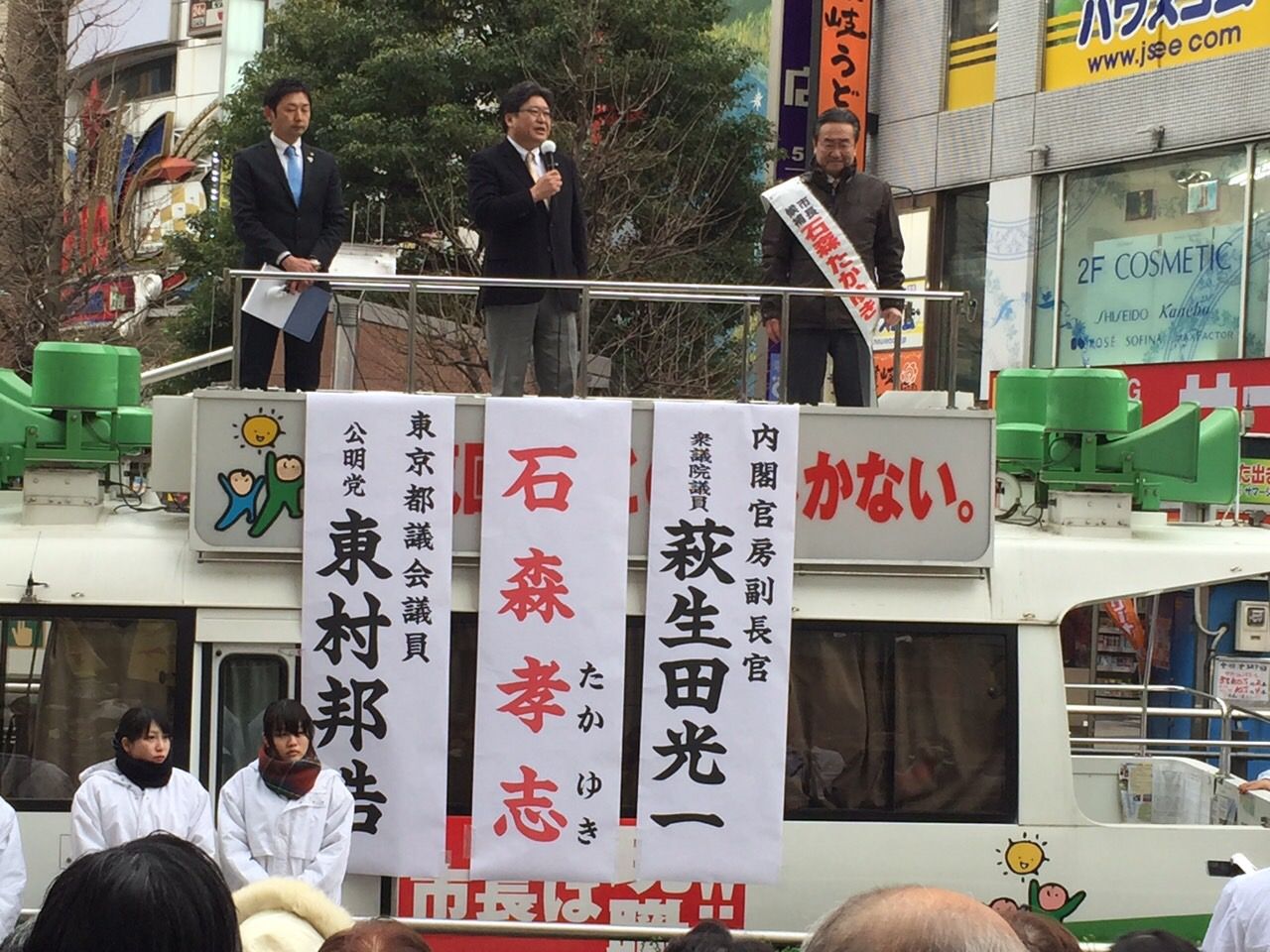 石森市長の総決起大会は寒い中、オリンパスホール満席の皆さんが集まって頂きました。石森市政の4年間は国政・都政との連携も良好で、しっかりと成果を上げています。来年は市政100年の大きな節目を迎えます。三多摩のリーディングシティとしての八王子再生に力を合わせて臨む決意です。