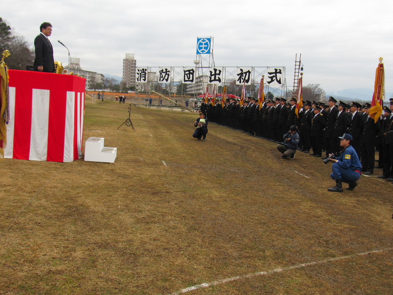 今年の出初式は寒い中で隊員の方々も大変だったと思います。正業を持ちながら地域で使命感を持ってがんばる皆さんに敬意と感謝を申し上げました。都下唯一の消防記念会のはしご乗りも市制100周年の新年にふさわしい勇姿でした。