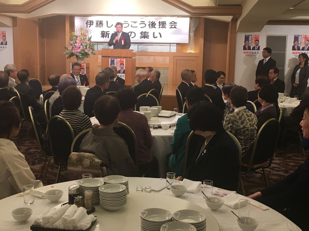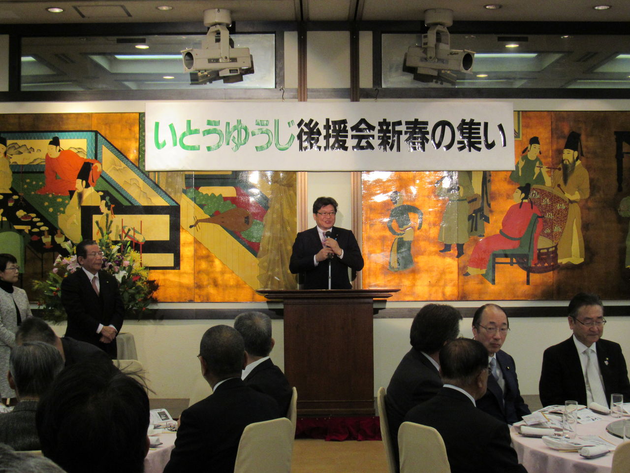 我党公認で夏の都議選に挑む「伊藤しょうこう」、「鈴木レオ」両名の新春のつどいが行われました。いずれの後援会も新しい目標に向かって今まで以上に闘志をみなぎらせています。限られた地域を地盤とする市議会選挙と、全市を対象とする都議会ではやるべき事柄が格段に異なり大変でしょうが、若い二人には何としても戦い抜いてほしいと願います。