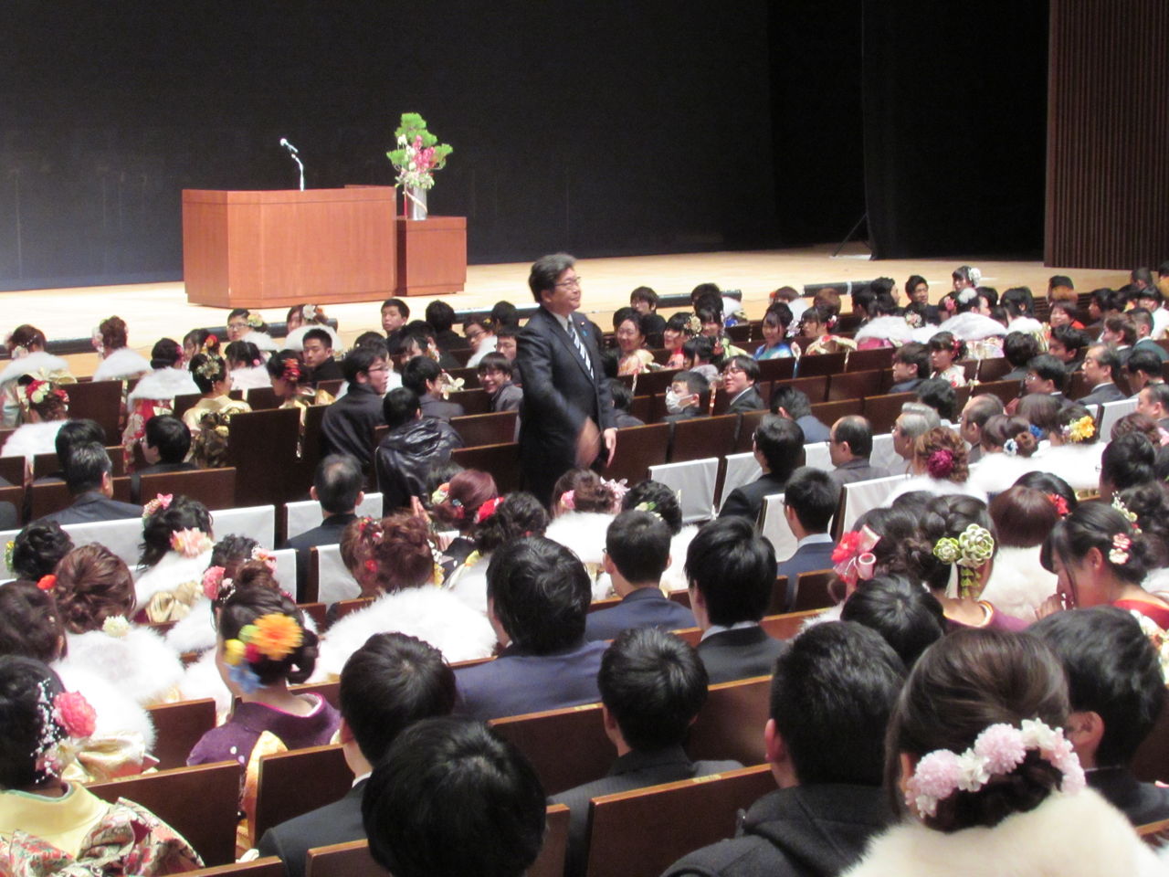 ここ数年、新成人の有志による実行委員会方式の企画、運営に移行してからは整然と行われていた式ですが、今年はおしゃべりも多く、大声を出す者もいてちょっぴり残念でした。