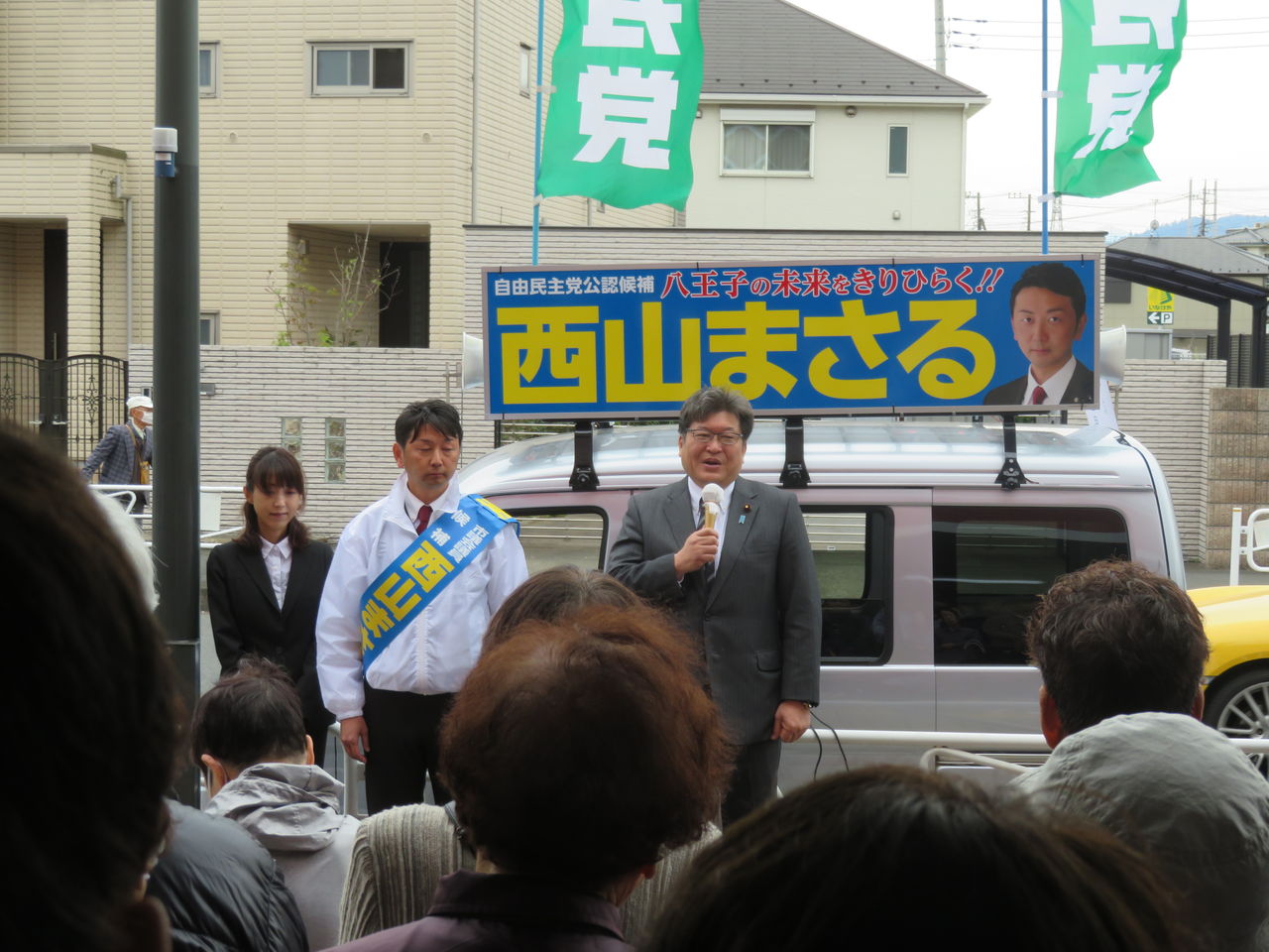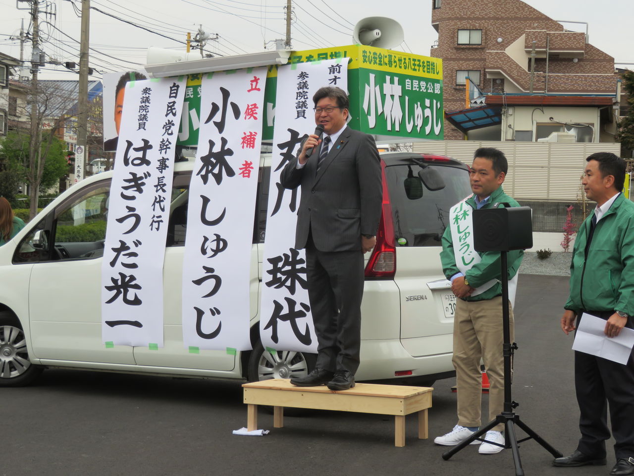 市議会議員選挙も残り1日。候補者の皆さんはラストスパートで頑張っています。この一週間、党幹事長代行、そして都連総務会長として他県や他市への応援日程もあり、かつてのように地元密着という訳にはいきませんでした。ありがたい事に私に代わって在京中の衆参の先輩や仲間の皆さんが八王子へ駆けつけて頂き、マイクを握って頂きました。最後の最後まで堂々と政策を訴え、死力を尽くして当選を目指して欲しいと願います。