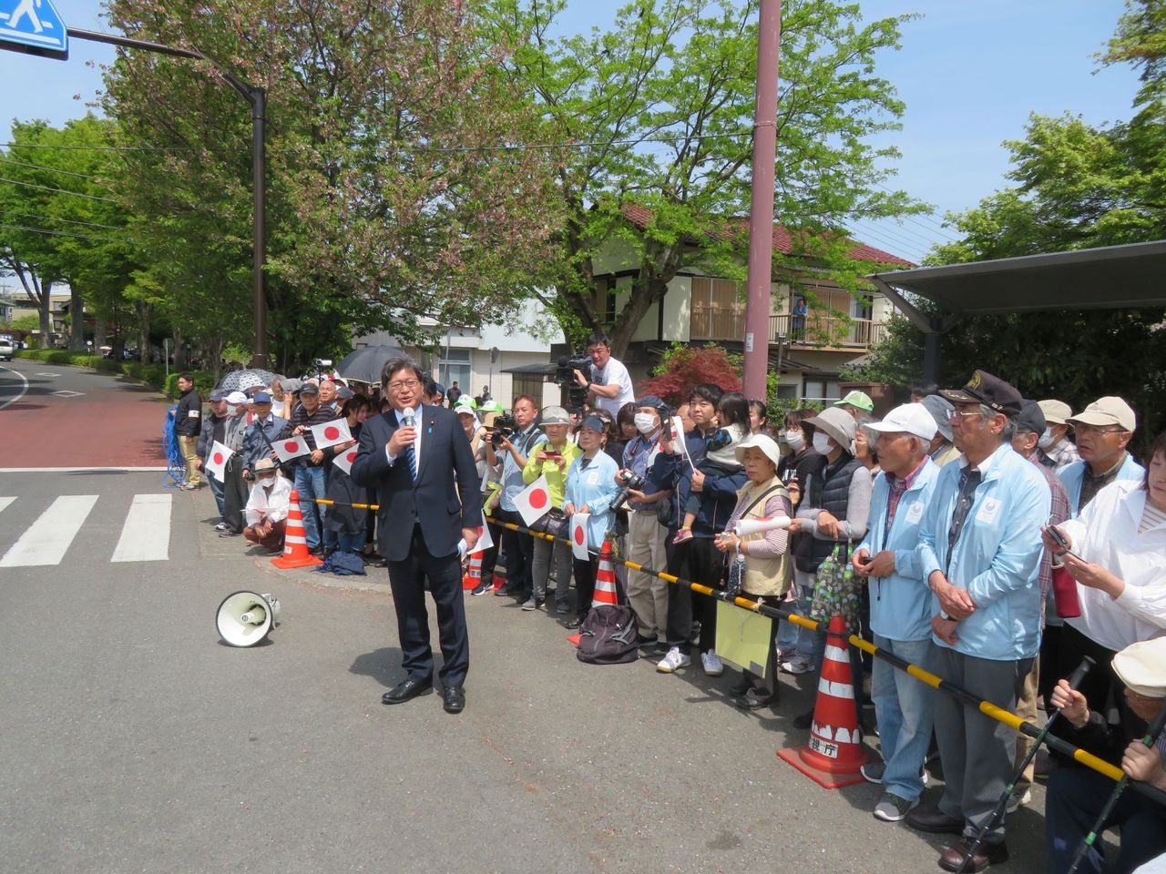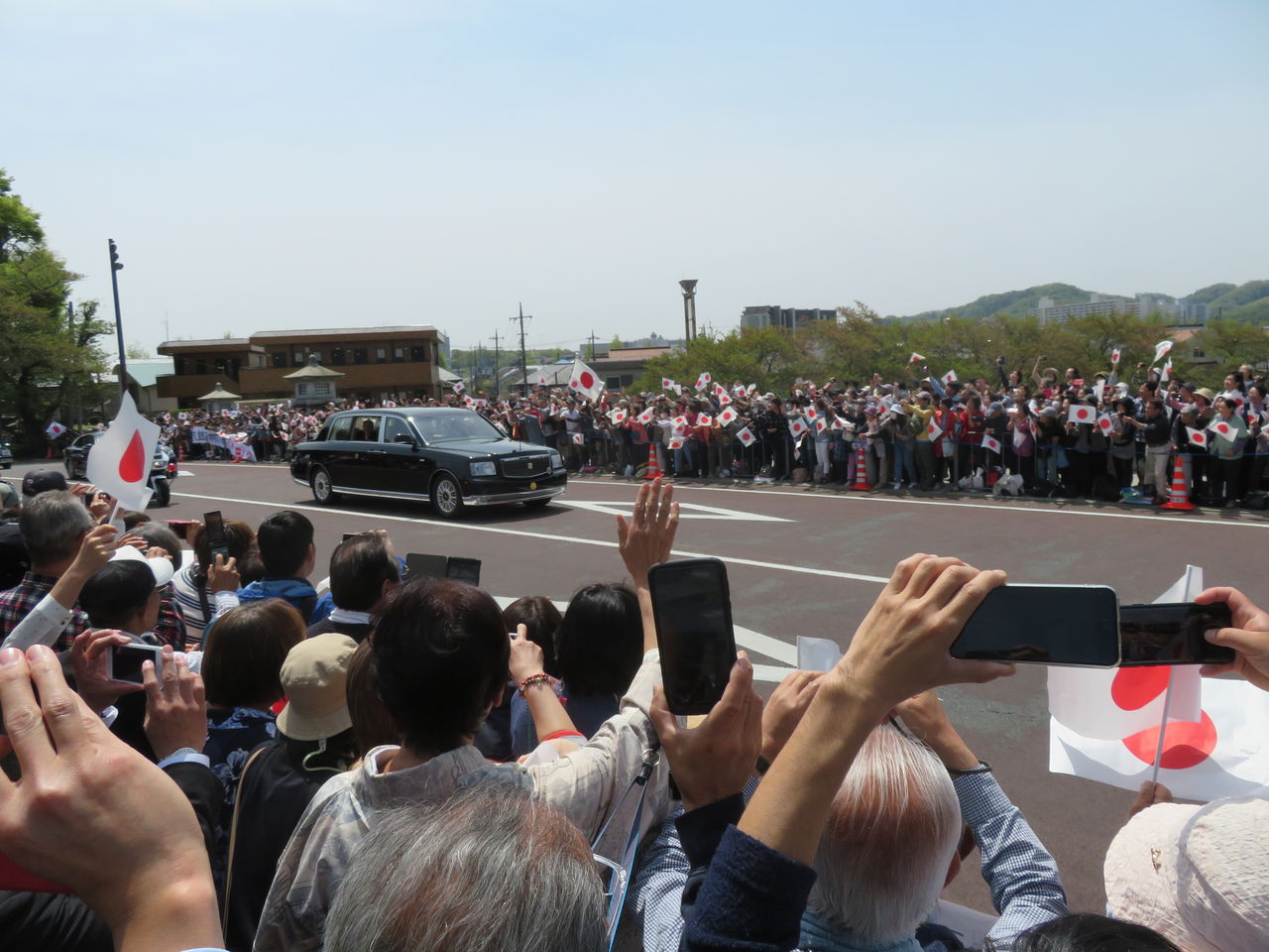 天皇皇后両陛下は、昭和天皇への退位のご報告の為、八王子の武蔵陵を訪問されました。警備の関係もあり、いつもはギリギリまで日程が公表されないのですが、今回は宮内庁から3週間ほど前に内示があり、町自連、安協、八王子まつりやいちょう祭りの実行委員会にも呼びかけ、「両陛下をお迎えする会」を組織し準備をしました。八王子インターから浅川大橋、追分から御陵まで、沿道にはかつてないほどの市民が出迎え、両陛下は長い道のりを窓を開け、手を振り続けてくださいました。日の丸の小旗4000本はたちまち無くなり、沿道の小学校、幼稚園、保育園の子供たちは手づくりの小旗で集まってくれました。