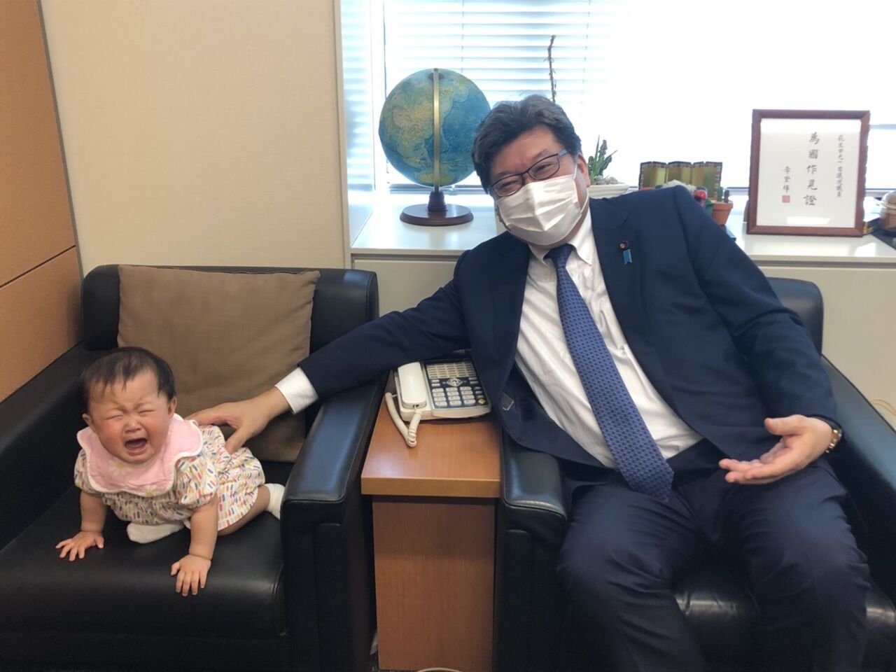 国会議員会館の秋山秘書が産休から戻ってきました。会館併設の保育園に通う娘の明日香ちゃんが毎朝、新人スタッフとして我々を迎えてくれて癒されます。日中は国会や文科省にいるためほとんど会館には入りませんので議員室のソファーは彼女専用のお昼寝場所のようです。私にはまだなつきません。