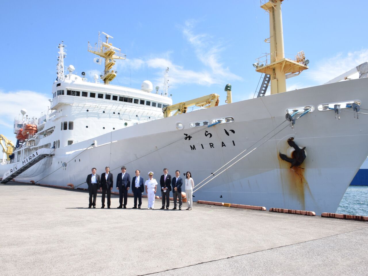 海洋研究開発機構(JAMSTEC)を訪問しました。海洋地球研究船「みらい」の上で北極域研究の現状や展望について説明を受け、有人潜水調査船「しんかい6500」や自律型海中ロボット「AUV-NEXT」等を視察しました。終了後、若手研究者の皆さんと地球温暖化対策や海に沈む大量のプラスチックゴミへの取り組みなど研究課題について意見交換を行いました。私からは、「海洋研究は府省庁にまたがるが海の事はうちにまかせて!という意気込みで各省を束ねて幅広に研究を進めて下さい」とお願いしました。