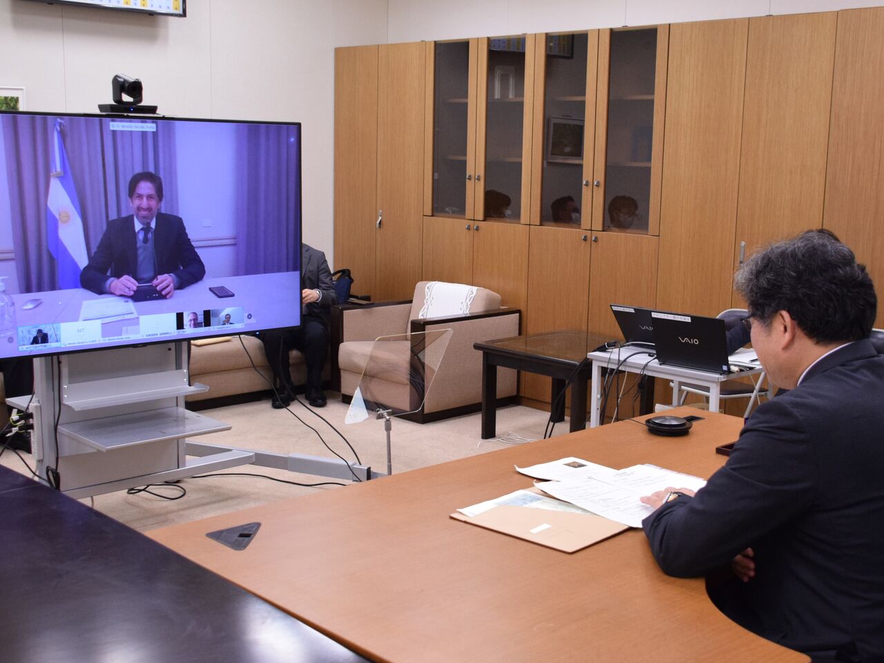 ニコラス・トロッタ アルゼンチン教育大臣とテレビ会談を行いました。同国では感染者が38万人に達し、未だ厳しい環境にあり、一部の州を除けば学校は6ヶ月以上も休校が続いているそうです。我国同様、学びの保障に懸命に取り組んでいるとの事でした。私からは日本の取り組みを紹介。消毒、マスク、手洗いなど徹底した衛生管理のマニュアル化、生徒間の一定距離を保つ為に1クラスを2つの教室に分けること、学年ごとに登校日を設けた分散授業について説明をしました。オンラインの有効性は認めながらも対面授業や集団での活動、授業以外の各種行事の大切さについても議題となりました。