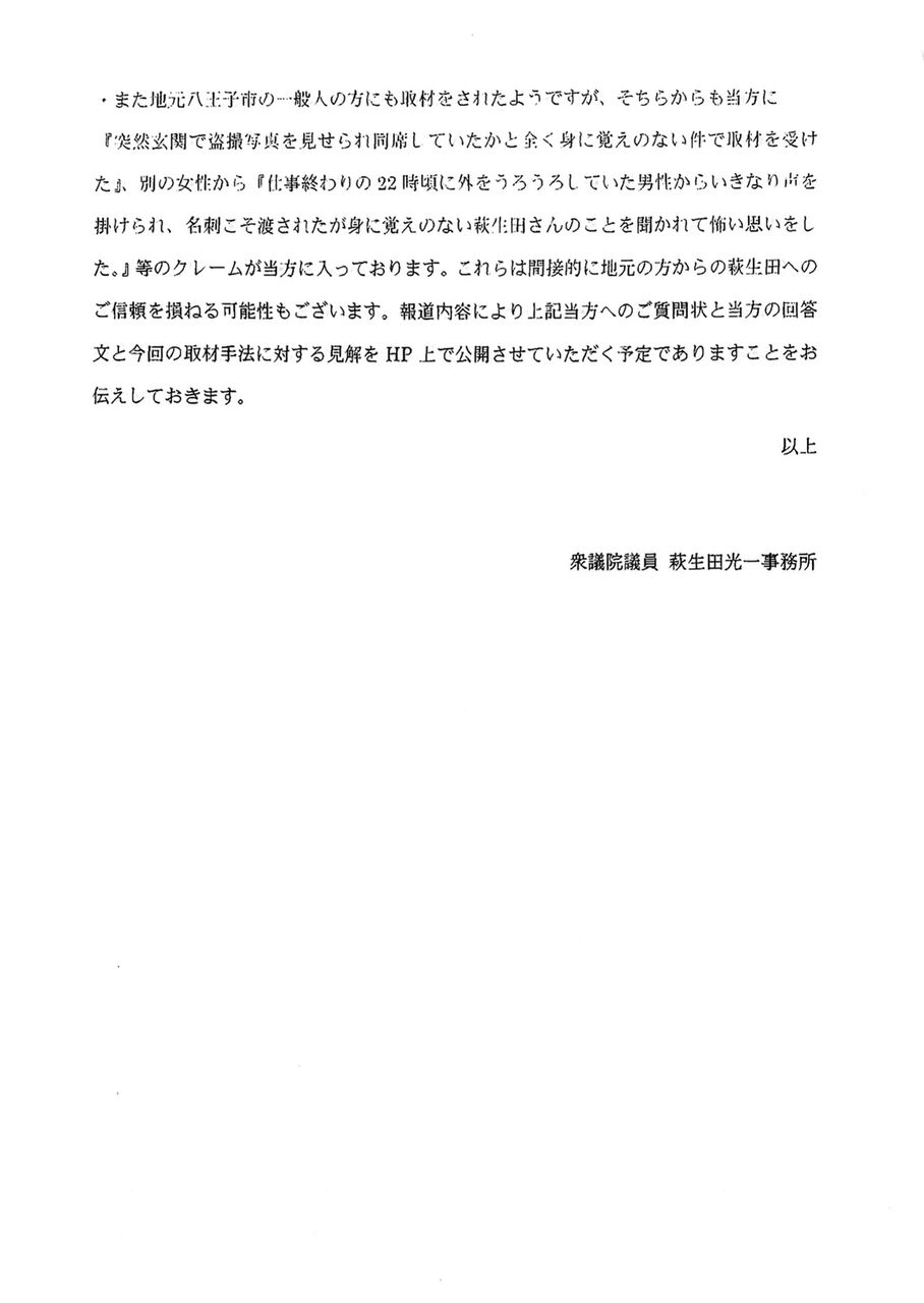 ¤³¤Î¾¤Ë¤âÅöÊý¤«¤é¤Î²óÅúʸ¤Î°ìÉôÈ´¿è¤ä¡¢Èë½ñ¤È¤ÎÅÅÏäǤΤä¤ê¼è¤ê¤Ç¡Ö·Ý¼Ô¤È¤Î²ñ¿©¡×¤È¤Î¼ÁÌä¤ËÂФ·¤Æ¡Ö·Ý¼Ô¤µ¤ó¤È¤Î²ñ¿©¤Ç¤Ï¤Ê¤¤¡¢·Ý¼Ô¤µ¤ó¤Ï¿©»ö¤ò¤µ¤ì¤Æ¤¤¤Ê¤¤¡×¤ÈÅú¤¨¤ë¤È¤½¤ÎÉôʬ¤À¤±¶¯Ä´¤¹¤ë¤Ê¤É¡¢°ìÊýŪ¤Ê½ñ¤µ¯¤³¤·Åù¤â¤¢¤ê¤Þ¤·¤¿¤Î¤Ç¼ÁÌä¾õ¤È²óÅúʸ½ñ¤ò¸ø³«¤µ¤»¤Æ¤¤¤¿¤À¤¤Þ¤¹¡£