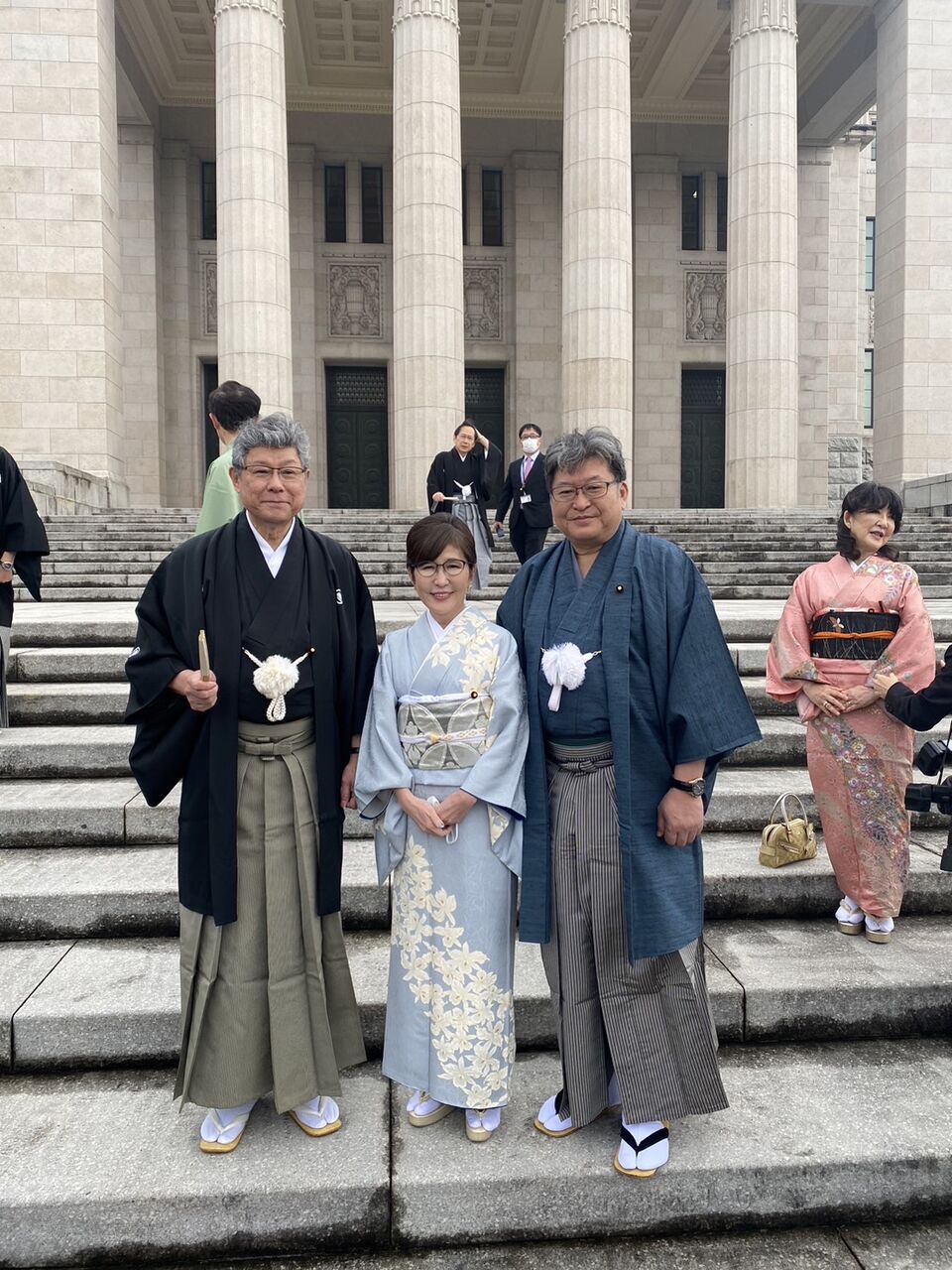 天皇陛下のご臨席を仰ぎ第211回国会が開幕しました。超党派の和装議連(野田聖子会長)は毎年、通常国会の初日に着物で登院する活動を続けており、織物の街出身の私も当選1回から参加させていただいております。しかし、官房副長官就任以来、中々着付けの時間がとれず見送ってきましたが、今年は9年ぶりに初心に帰って着物で出席しました。