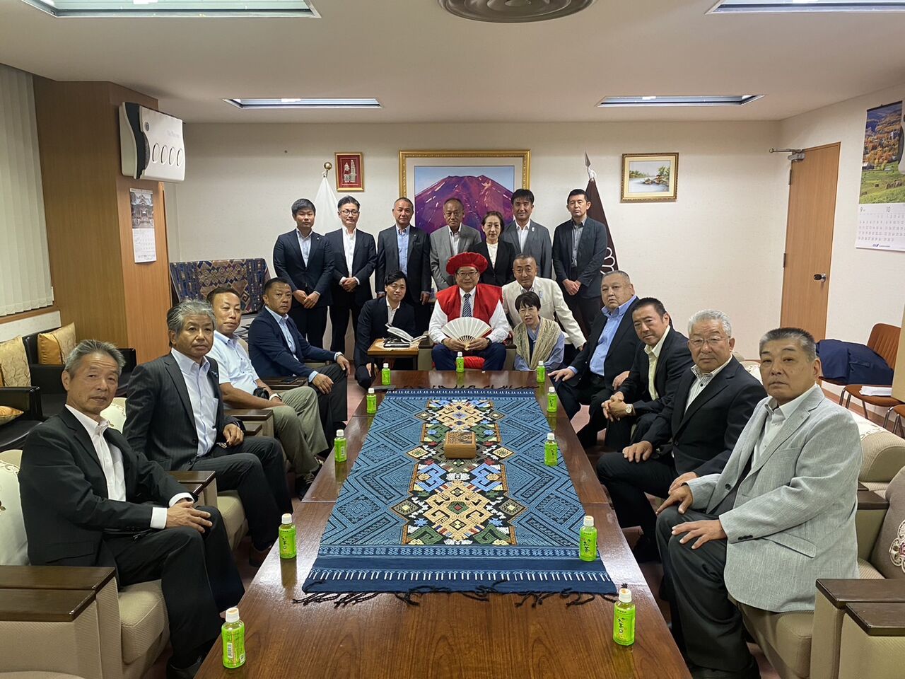 祭同好会「萩乃会」の皆さんが政調会長室に激励に来てくれました。八王子まつりでは毎年中町の山車を引いて盛り上げていただいております。還暦のお祝いということで赤いちゃんちゃんこをいただきました。嬉しいような嬉しくないような(笑)