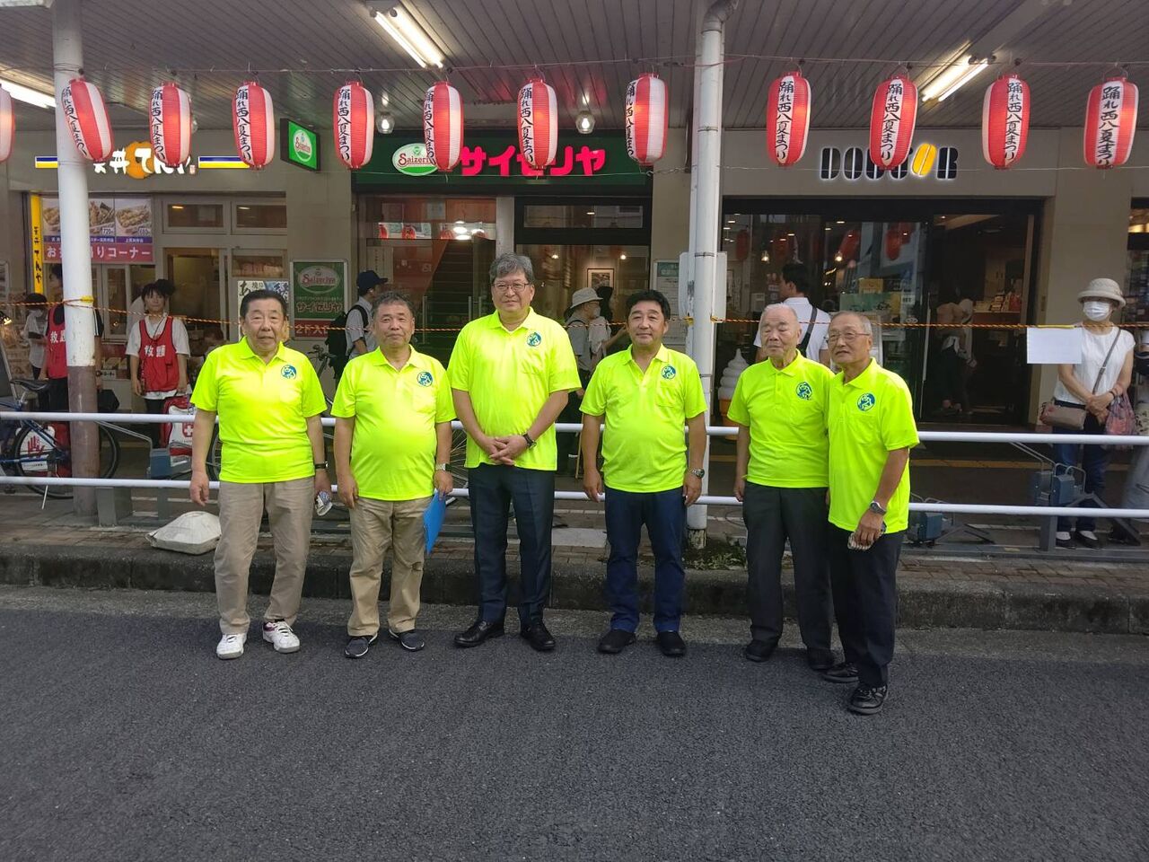 私が都議会議員時代に、「元気を出せ!商店街事業」という都のわずかな補助金をきっかけに、西八商栄会の皆さんと仲通り一本を通行止めにして始めた手作りの小さなお祭りでしたが、今では路線バスもタクシーも協力いただき、周辺エリアを全て会場とする本市を代表する晩夏の風物詩となりました。
