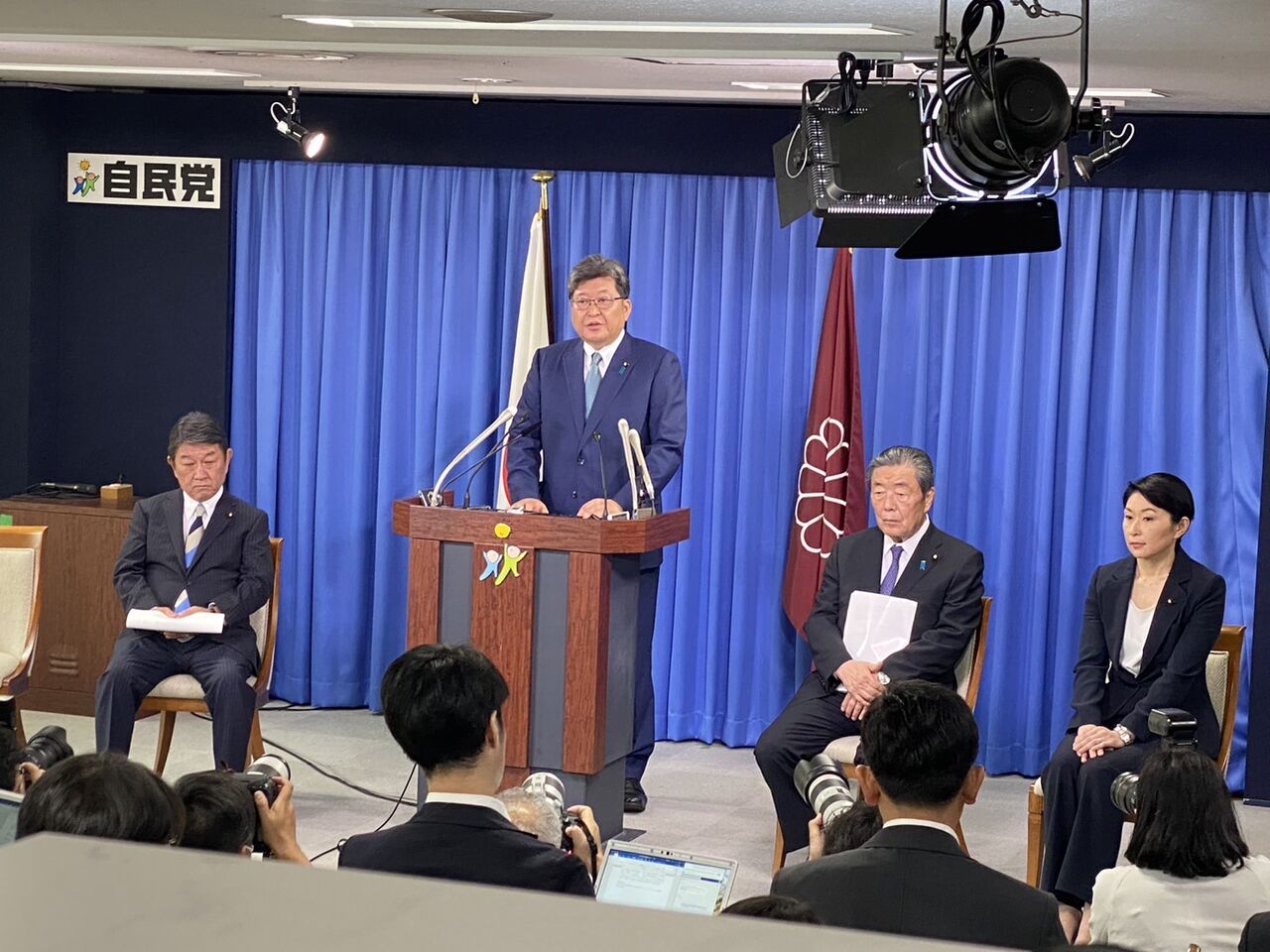 党政務調査会は部会長人事を決定しました。14人の部会長のもとで向こう一年間、党の政策議論を担っていただきます。早速、政調正副会長・部会長会議を招集し、岸田総理から指示のあった経済対策について物価高騰、成長分野、安全安心など5つの柱に沿って検討することを指示しました。二週間ほどで取りまとめ政府に提案いたします。