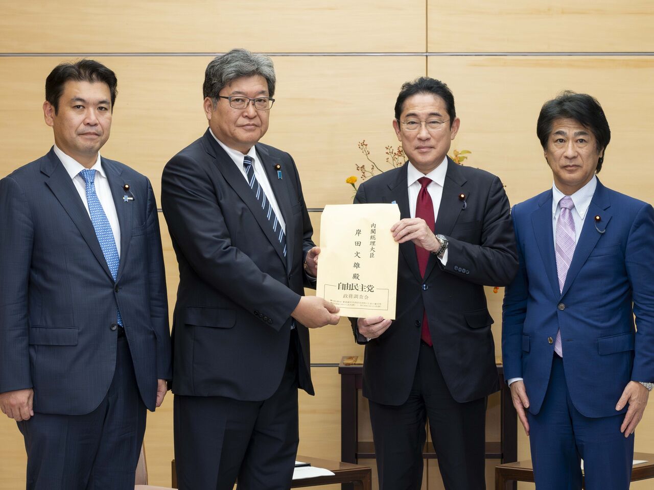 自民党としての経済対策をまとめ岸田総理に手交しました。政府も我が党も賃上げに向けた努力を積み重ね、少しずつ効果が現れています。一方、反転の兆しが見えない円安、サウジアラビアやロシアによる石油の減産、加えてイスラエル、パレスチナの紛争など引き続きエネルギー価格の高止まりが予想される上、足元の物価高もあり、困難な状況が続いています。国民の負担増を抑制すると共に、暮らしや家計を直接支えるための思い切った施策の実行を求めました。話題の減税策については、賃上げや設備投資に伴う減税策にとどめ、年末や年度末を見渡せるスピード感のあるものに絞って提案しましたが、今日、改めて岸田総理から所得税も視野に新たな還元策の検討が指示されました。今後政府からの財源の裏打ちのある対策が示され、党としても再度議論を深めてまいります。