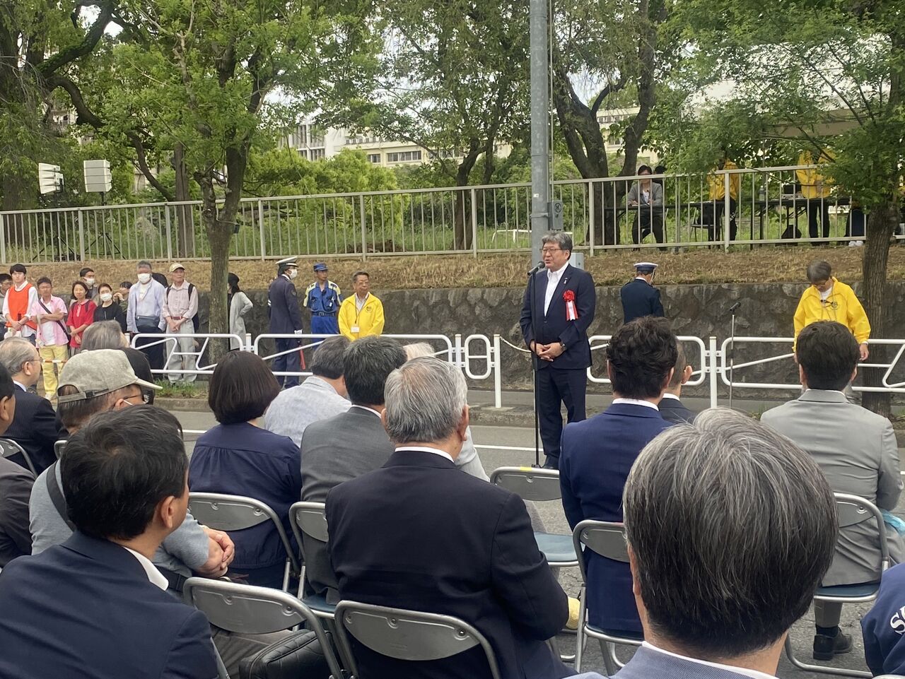 万一の備えを日頃から取り組んでいただいている関係者に感謝を申し上げました。一方、市の職員の市内居住率は約60%、「水害で鉄道が止まった場合、担当部課長は役所までどうやって来れるのか?」「国の災害住宅の取り組みを紹介し、せめて担当の部長くらいは市営住宅の空き部屋など災害対応を考えないと指揮官不在になってしまい訓練が活かされないのでは?」と同席の市議会の皆さんに問いかけました。