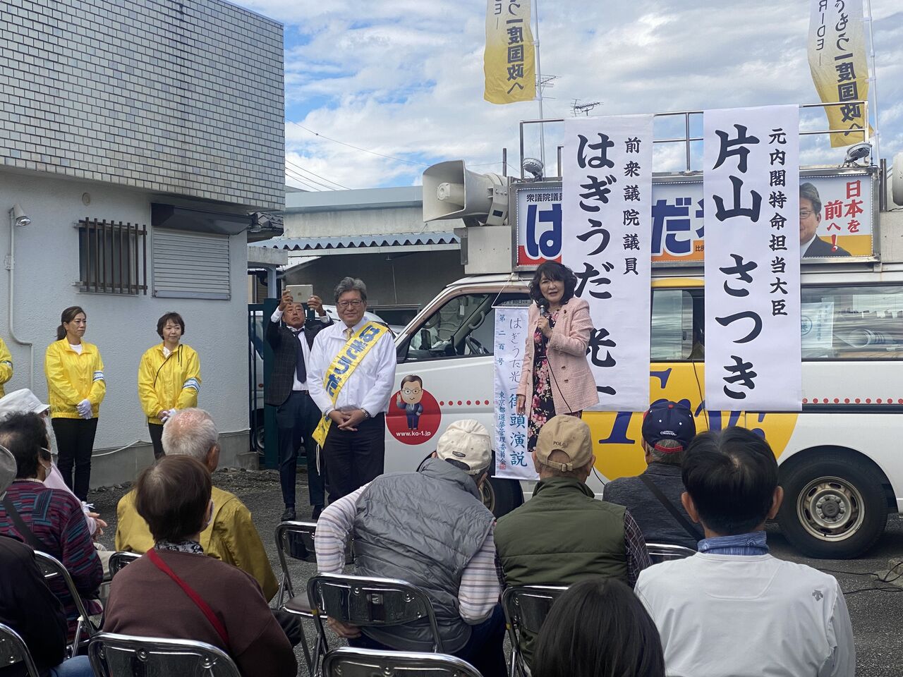 恩方の異動事務所には東京都連の仲間として、無所属の私に片山さつき参議院議員が駆けつけてくれました。政調会長時代は副会長として政策作りを支えてくれた仲です。恩方の地名も各町会の課題も知らない候補者にこの街を渡すわけにはいかない!地元の皆様が声をあげてくれました。