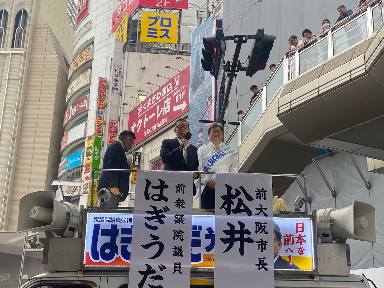 午後には盟友、前大阪市長の松井一郎氏がわざわざ大阪から駆けつけていただき、共に街頭に立ちました。