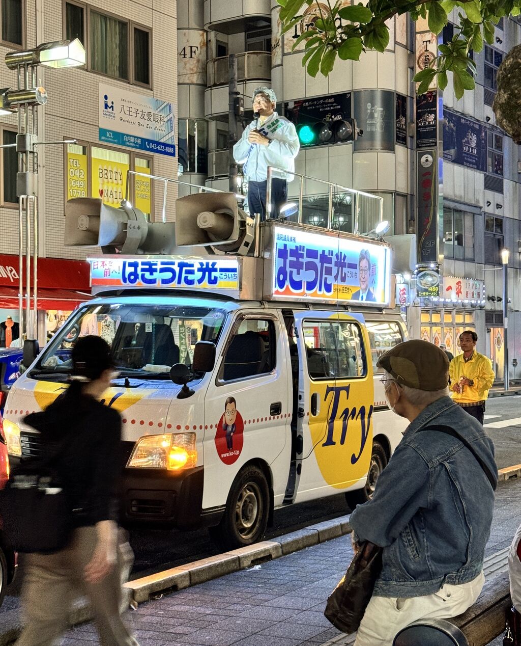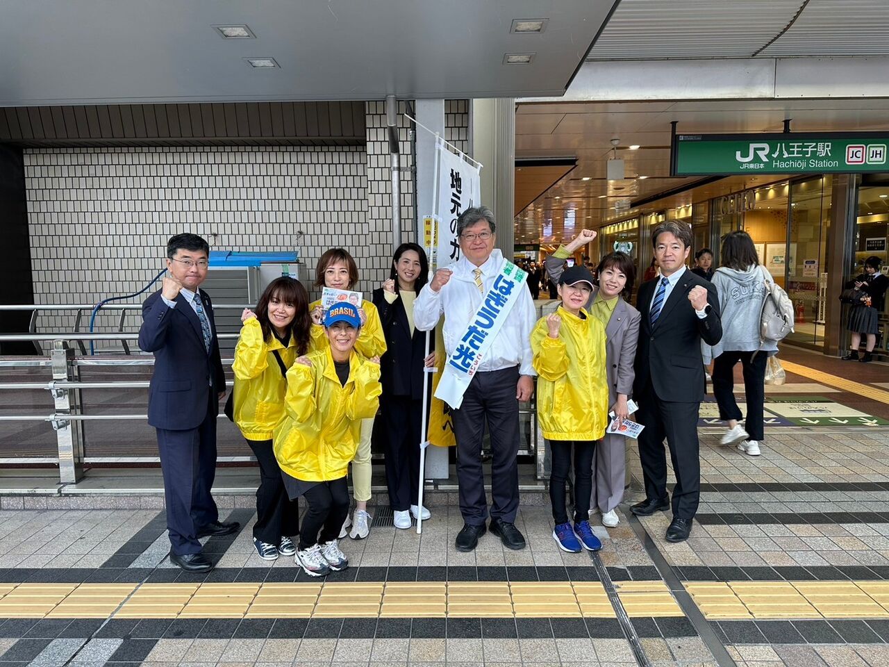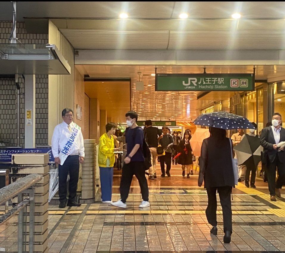 選挙戦11日目は雨の京王八王子駅からのスタート。地元中の地元、多くの皆さんから「がんばれ」と声をかけていただきました。