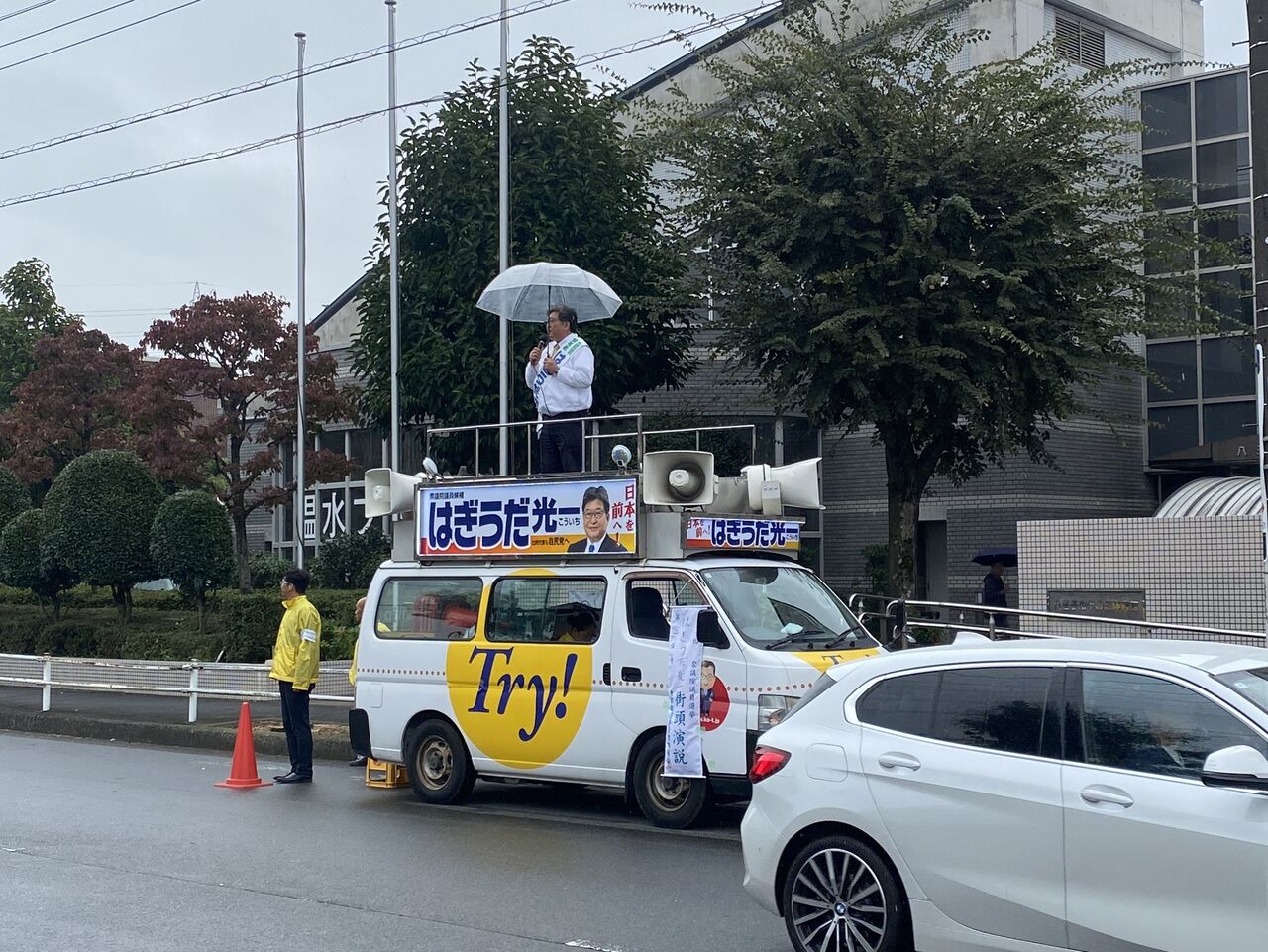 久しぶりに宣伝カーに乗り込み、戸吹・宮下の皆様に直接お願いに上がりました。小雨の中多くの方々が外まで出て応援していただきました。