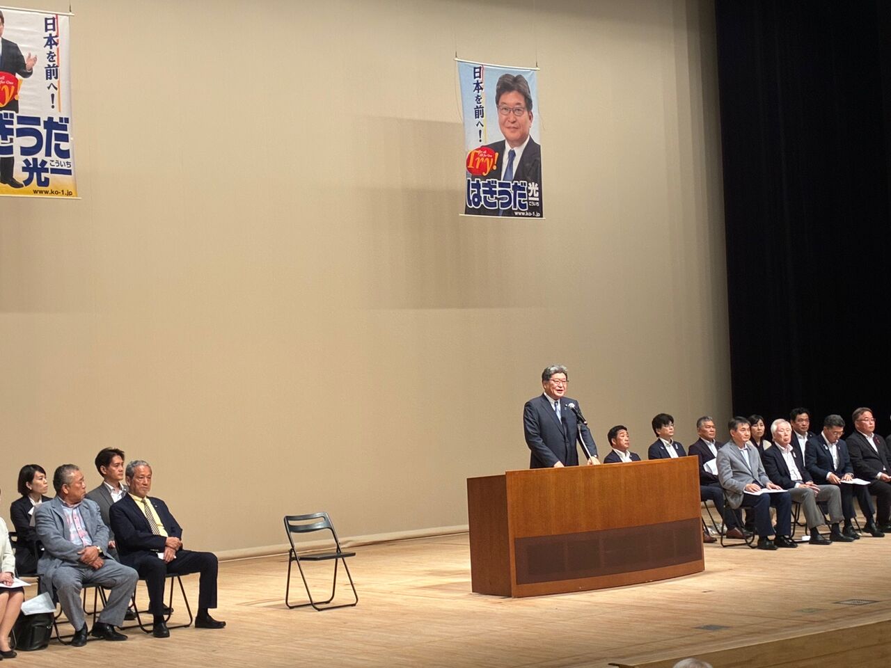 後援会地区・団体代表者会議を開催し、今年後半から来年に向けての後援会活動計画等をご承認いただきました。永田町の不安定な状況を鑑み、後援会としては常在戦場でいつ解散があっても対応できるよう体制を整え、各地区での国政報告会の開催等をお願いしました。