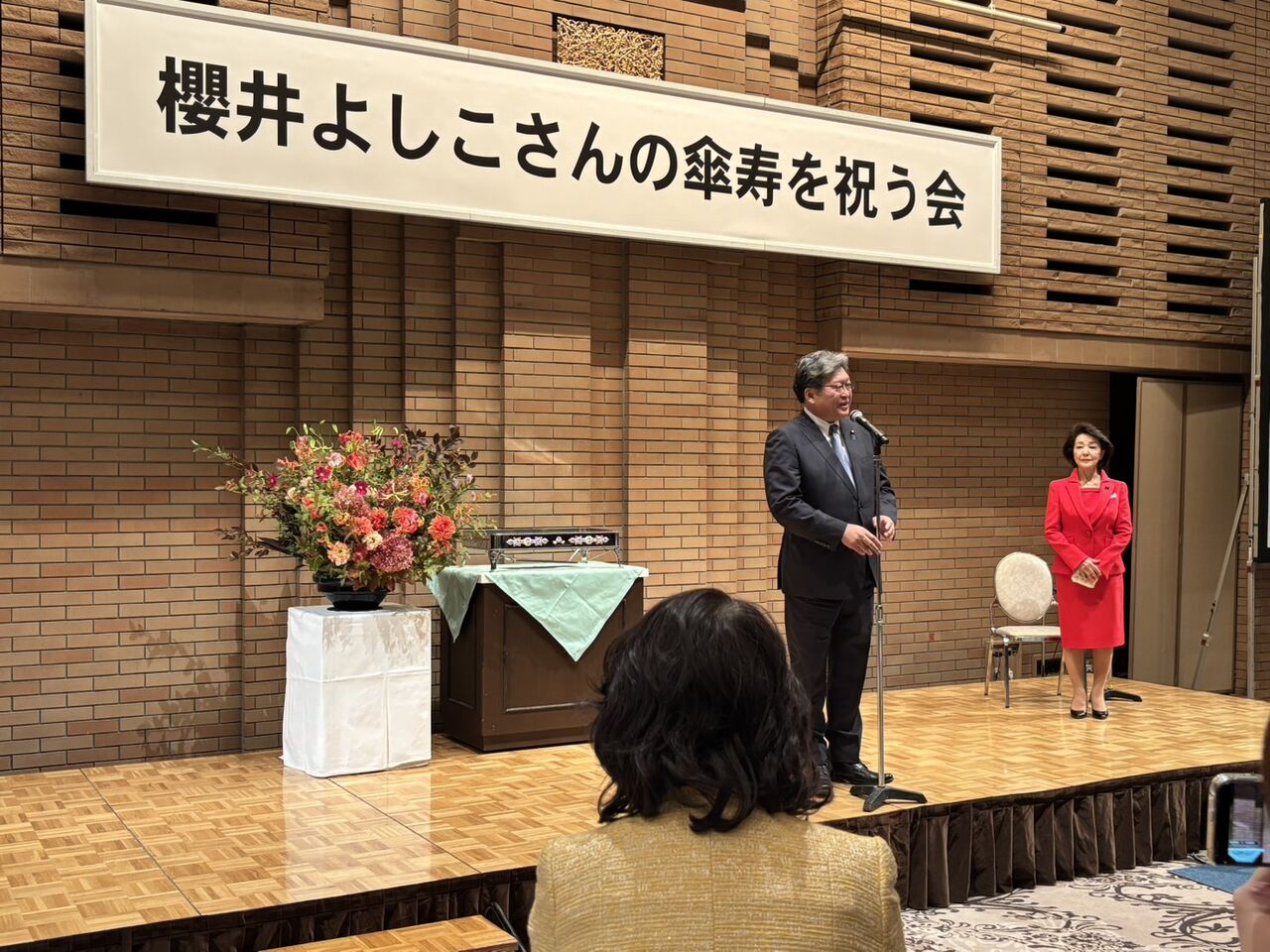 公私にわたりご指導をいただいている国家基本問題研究所の理事長 櫻井よしこ先生の傘寿のお祝いの会が開かれ、私は発起人代表を務めさせていただきました。全く年齢を感じさせない若々しさと凛とした言論はいつも私達に刺激を与えてくれます。これからも健康に留意され、理事長としての政策提言とジャーナリストとしての厳しい発信で日本を共に良い方向へと導いていただきたいと思います。